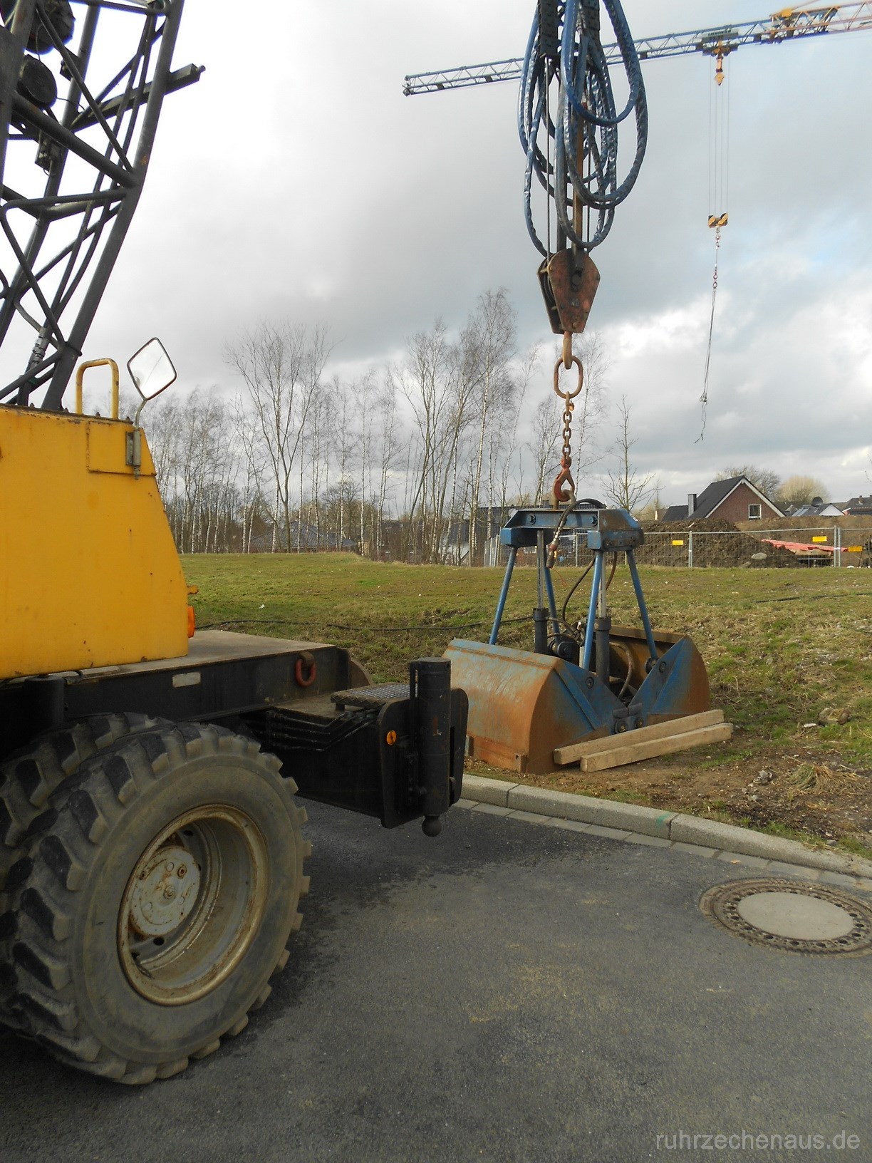 Gleichzeitig erfolgte die Aufstellung eines Baukrans und die Anlieferung der Arbeitsmittel wie ein Befahrungskorb und die Lutte