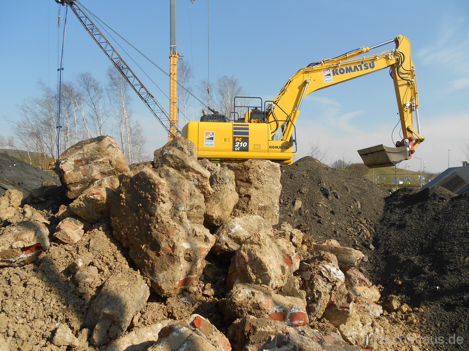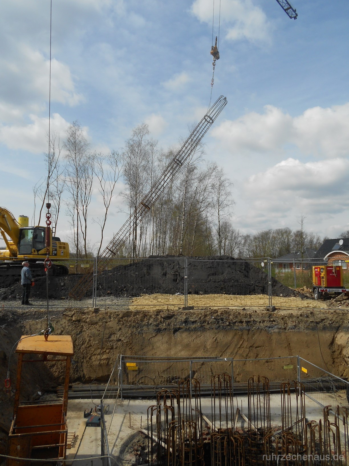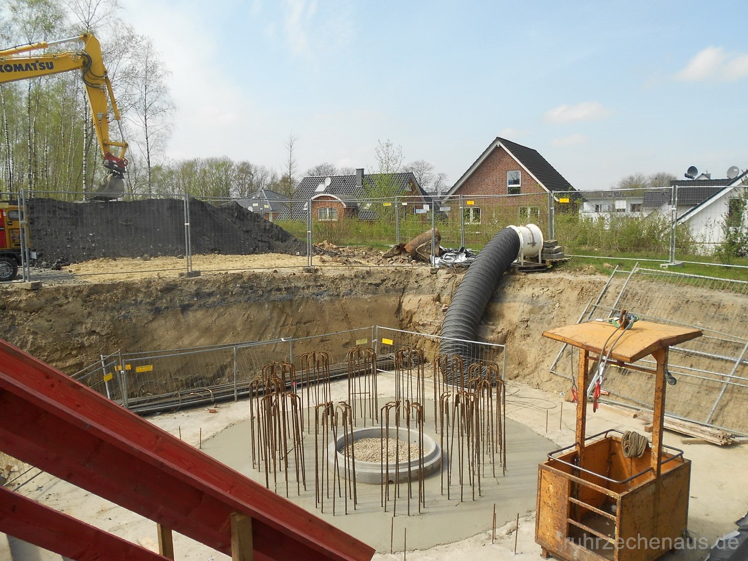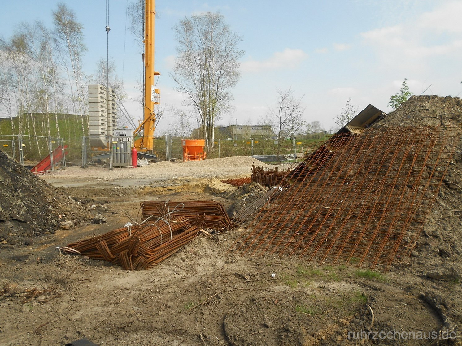 Bei der Sanierung Lothringen 4 war es besonders leicht Fotos der Arbeiten aufzunehmen, da der Schachtkopf frei zugänglich ist und der Bauzaun direkt an der Baugrube stand. Normalerweise kommt man nicht so nah an die Baustelle heran. So kann hier eine detaillierte Dokumentation einer Schachtkopftsicherung gezeigt werden. Diese Routinemaßnahme hat wenig mit den weiter südlich auftretenden Tagesbrüchen zu tun. Leider scheint die RAG mit etwas übertriebenen Sicherheitsregeln unnötig für Gerüchte von Gefahren zu sorgen. Die Standsicherheit von Schächten wie Lothringen 4 ist immer gegeben. Wenn wie im Mai 2015 Absackungen der Füllsäule beim Schacht Friedrich Thyssen 4 in Duisburg um 15 m bekannt werden sollte eine kurze Erklärung dazu alle Spekulationen beenden, da leider in der Presse ein oft unglaubliche Ahnungslosigkeit in Bezug auf den Altbergbau herrscht.