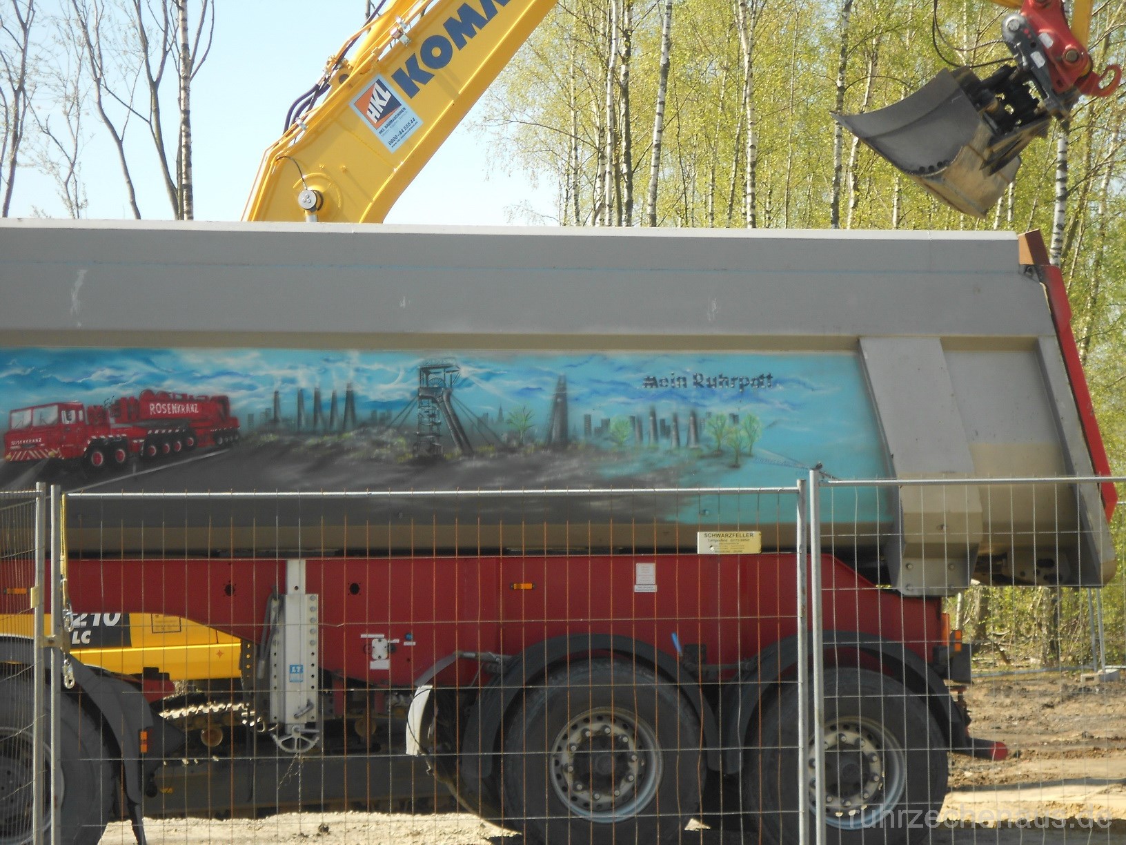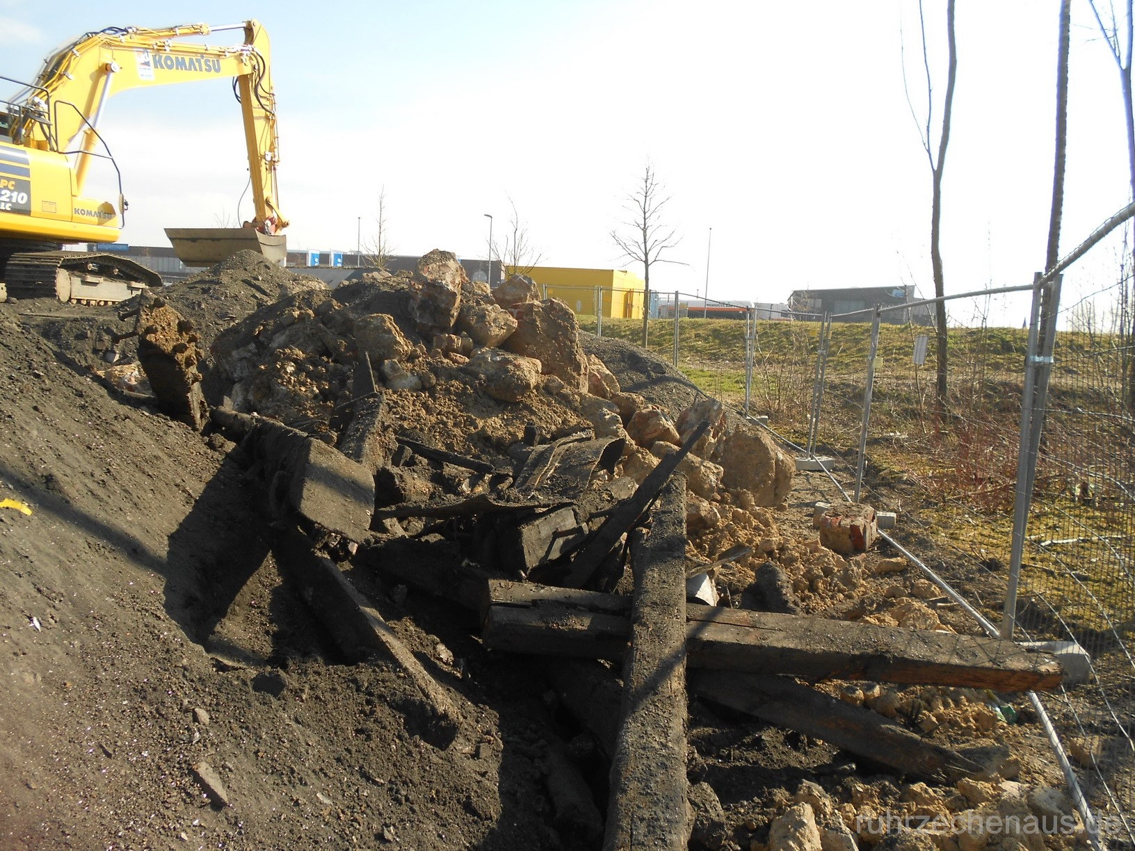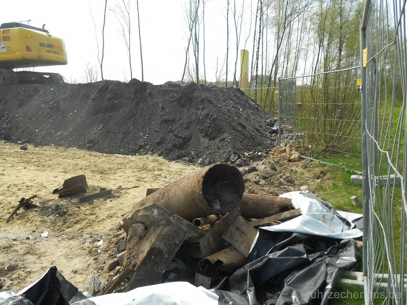 Begonnen wurde mit dem Freiräumen der Schachtscheibe und dem Umfeld. Dabei wurde die Fläche für die Ablagerung