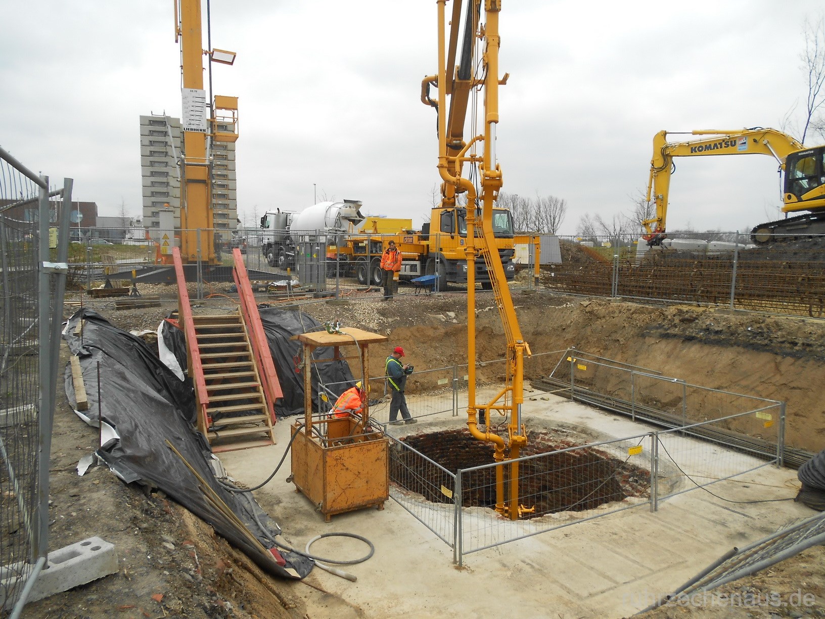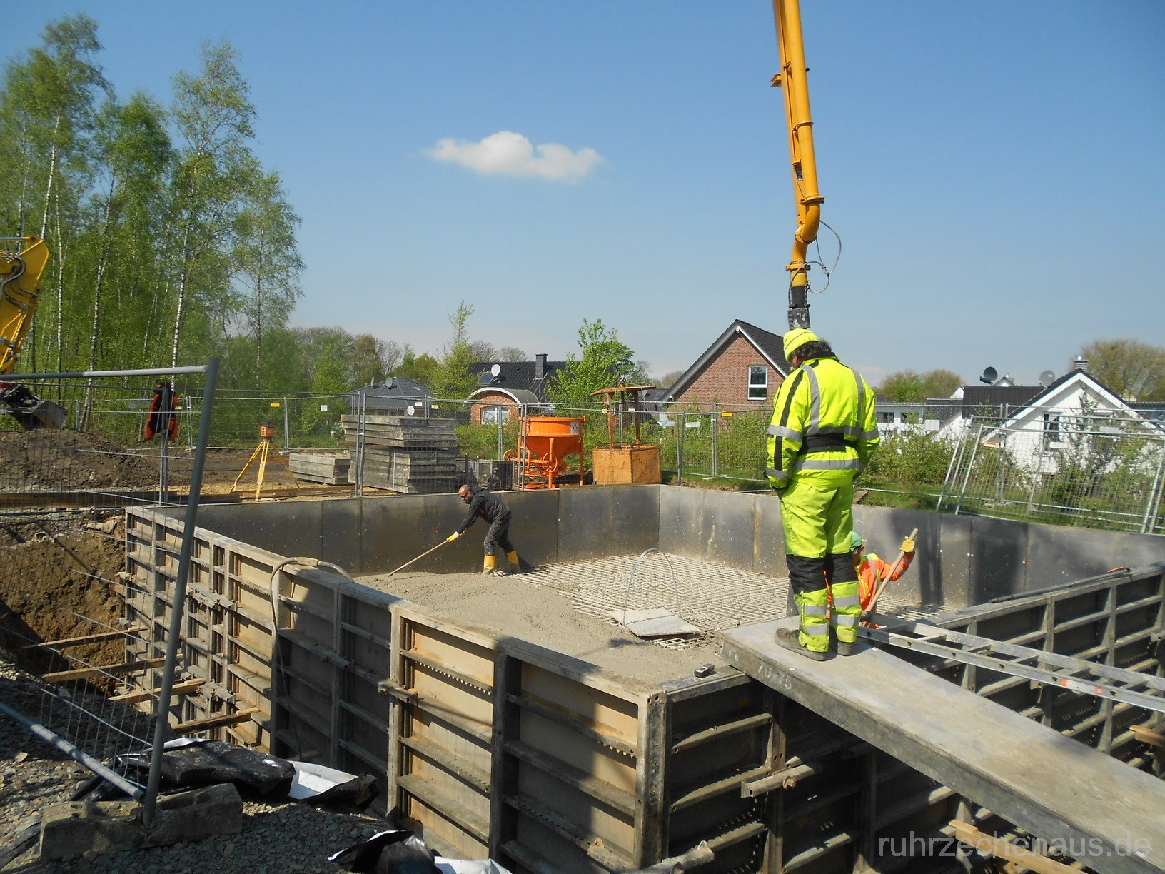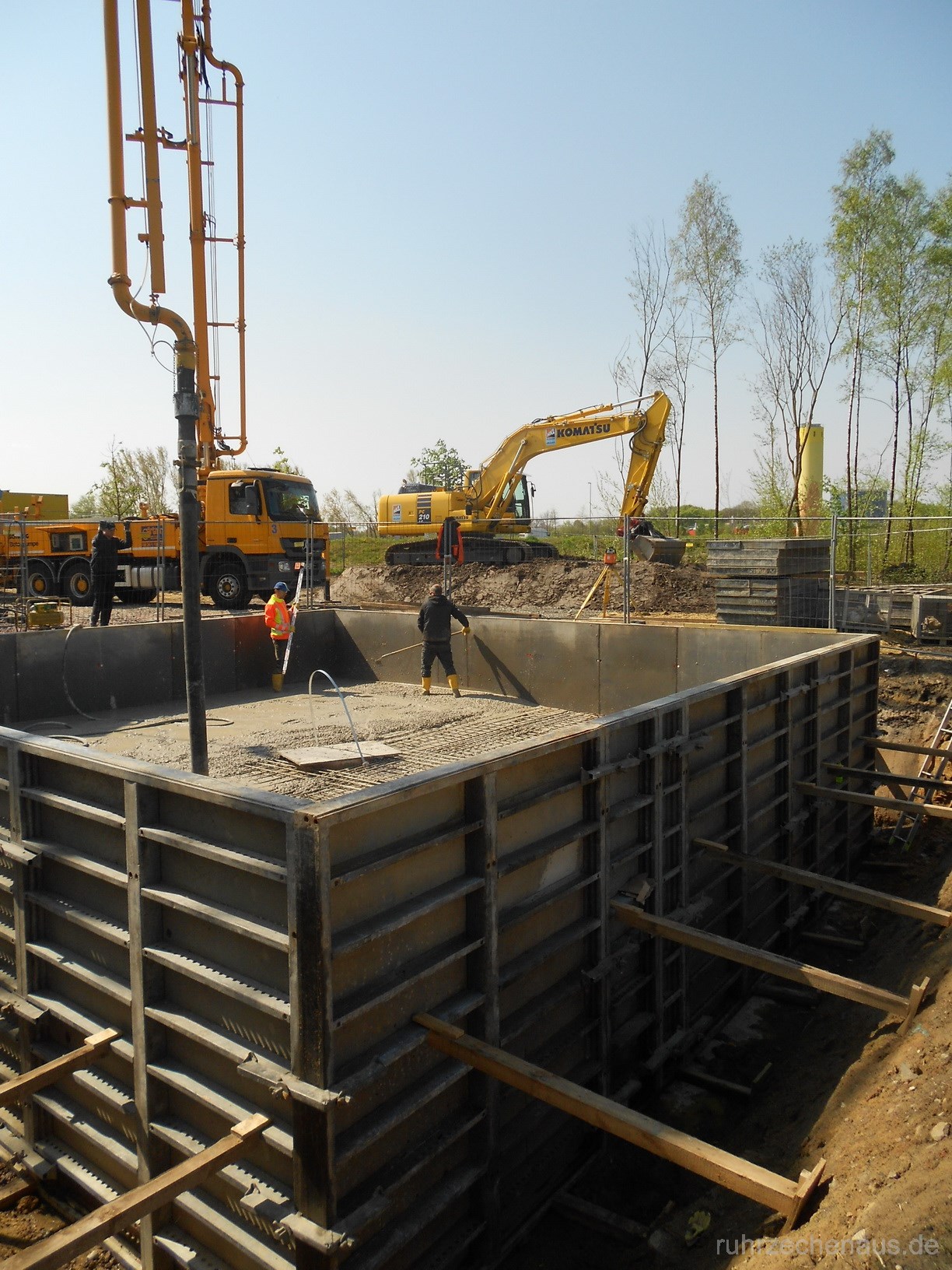 Die nächste Phase war die Betonierung der Abdeckplatte. Hier war die Baustelle nicht mehr von einer zu konventinellen zu unterscheiden, auf der ein Betonfundament gegossen wird.