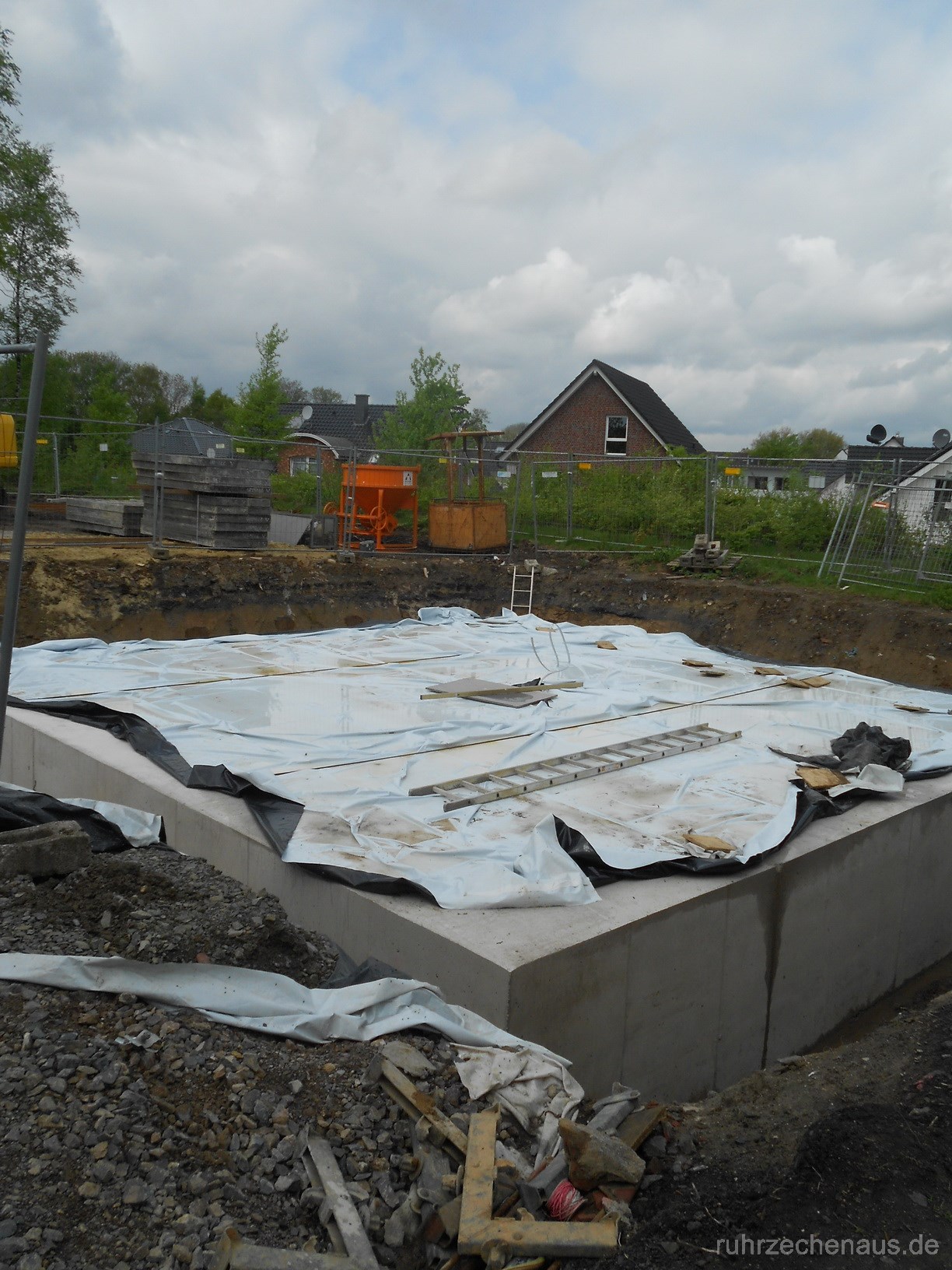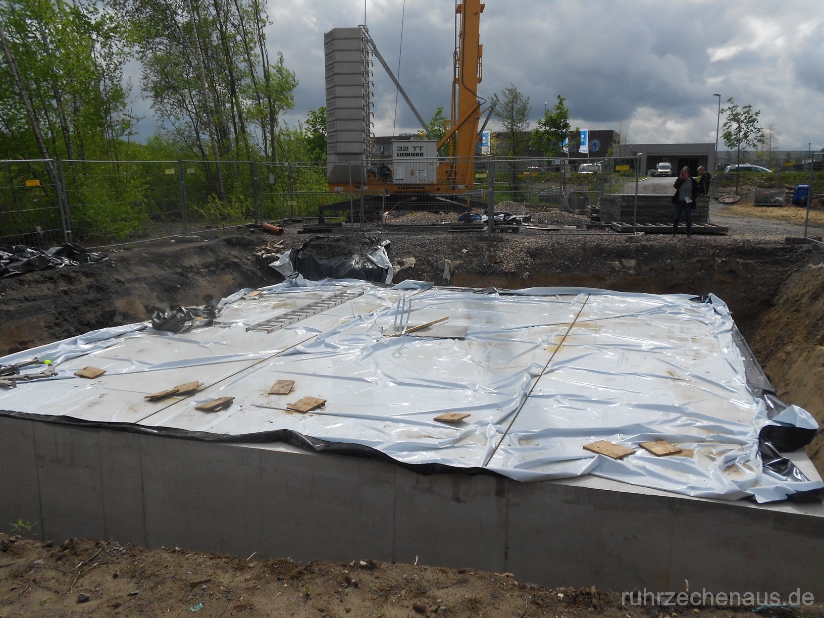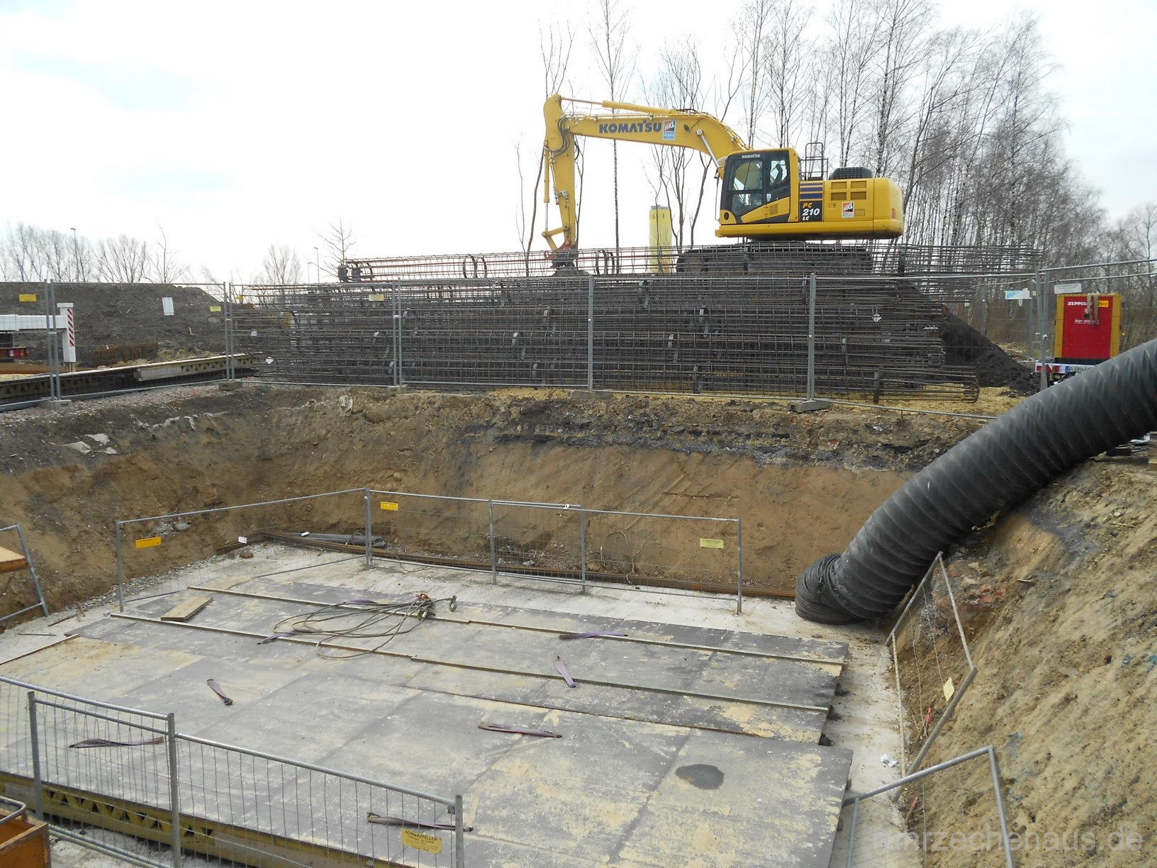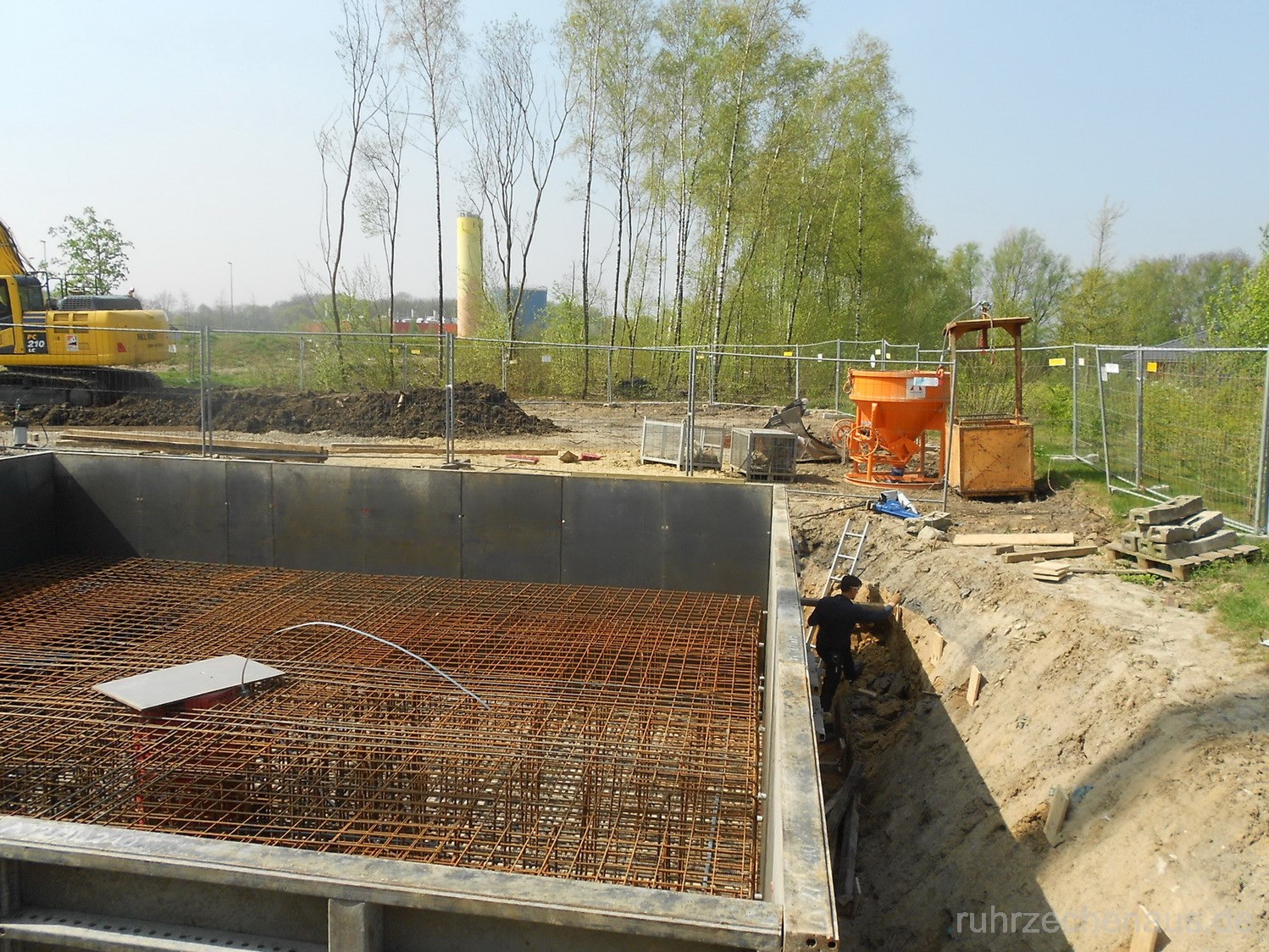 Die nächste Phase war die Betonierung der Abdeckplatte. Hier war die Baustelle nicht mehr von einer zu konventinellen zu unterscheiden, auf der ein Betonfundament gegossen wird.