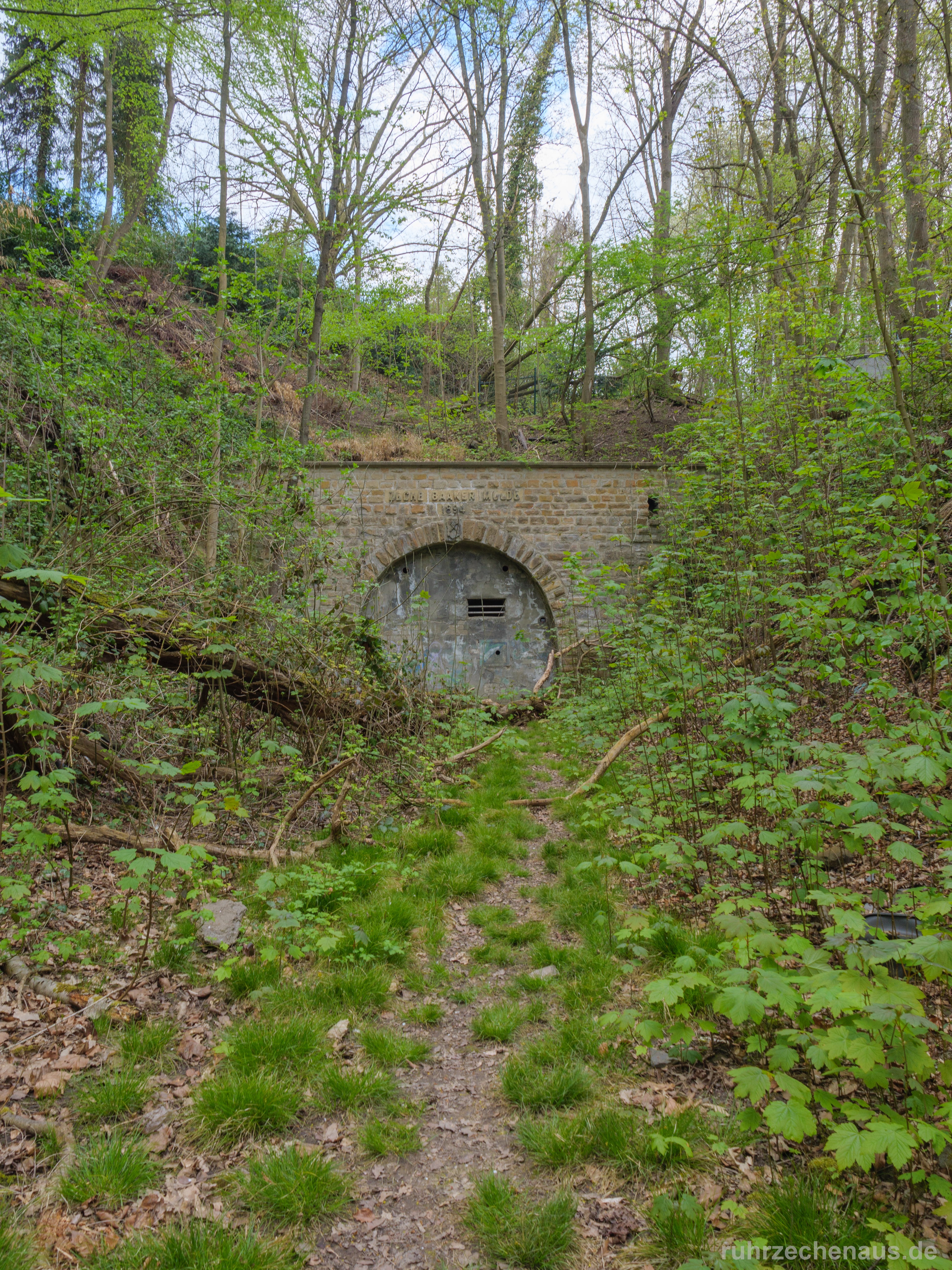 einen Bremsberg auf die Stollensohle gebracht. Das renovierte Stollenmundloch liegt neben der ehemaligen Zeche Dahlhauser Tiefbau.