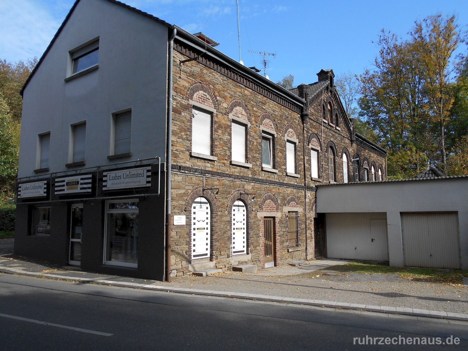 Auf der anderen Straßenseite ist das frühere Verwaltungsgebäude mit der Waschkaue und Werkstätten erhalten und nach Umbauten