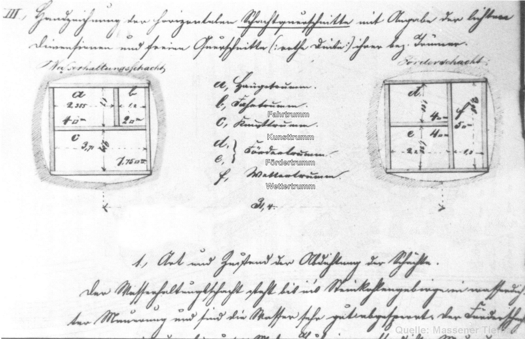 Oberbergamt. Der Schacht 1 wurde noch in Handarbeit abgeteuft. Dies erklärt auch den langen Zeitraum vom Beginn bis zur ersten