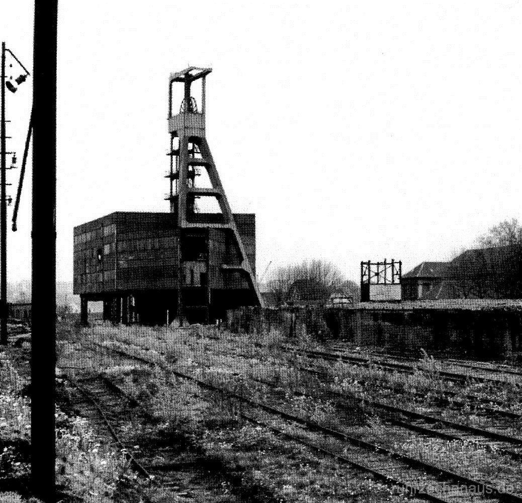 der Zeche Robert Müser, danach verfüllt und das bis dahin stehen gebliebene Gerüst von Schacht 4 abgerissen.