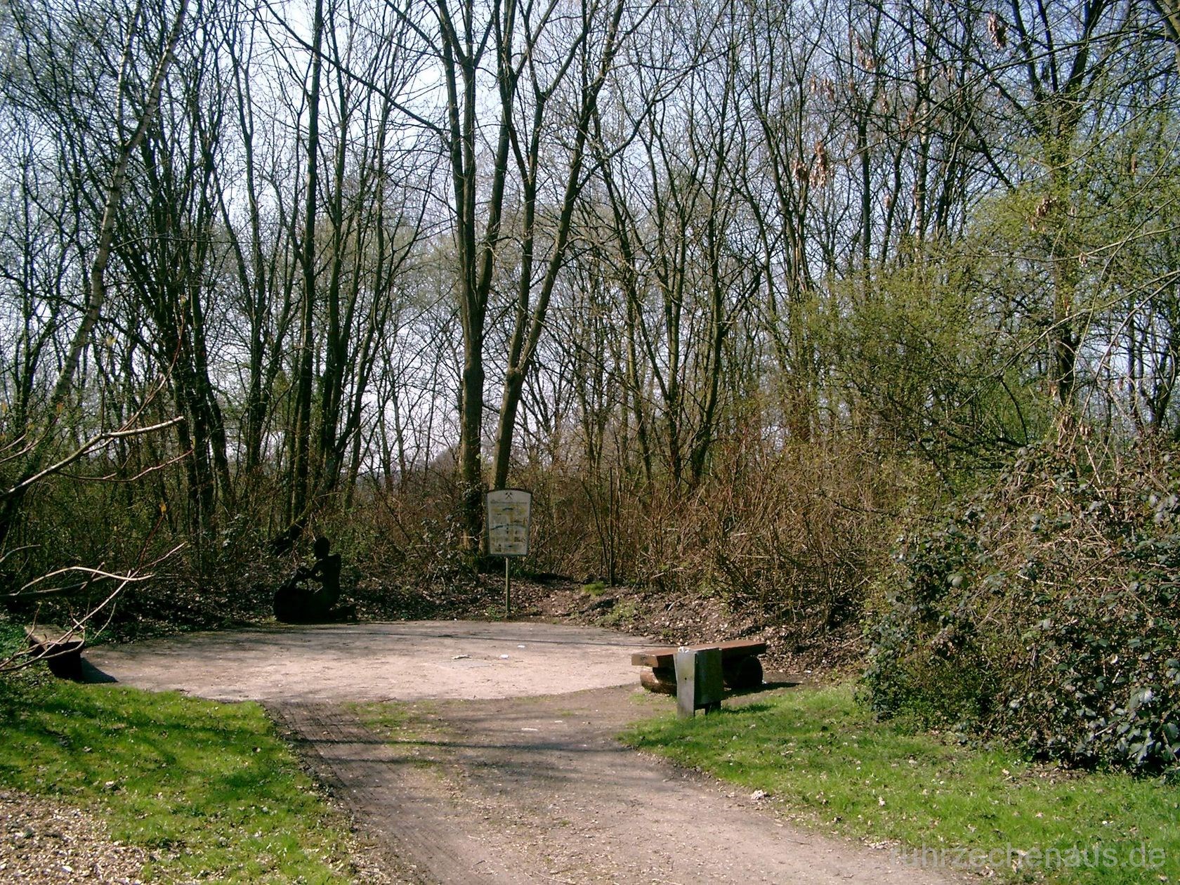 der Betrieb. Heute ist die Betonabdeckung der Schachtscheibe sichtbar. Dort steht ein Hinweisschild und die Skulptur eines