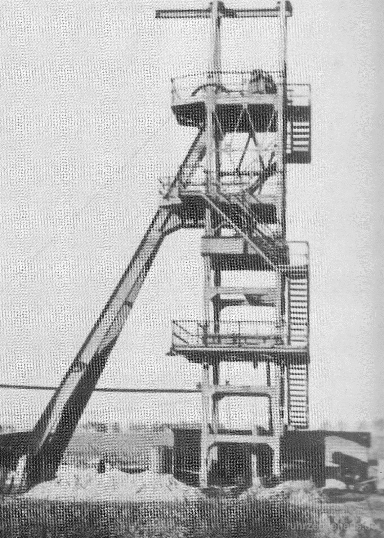 Das Abteufen von Schacht 1 gestaltete sich sehr schwierig, da er in einem ehemaligen Flussbett der Ruhr liegt.