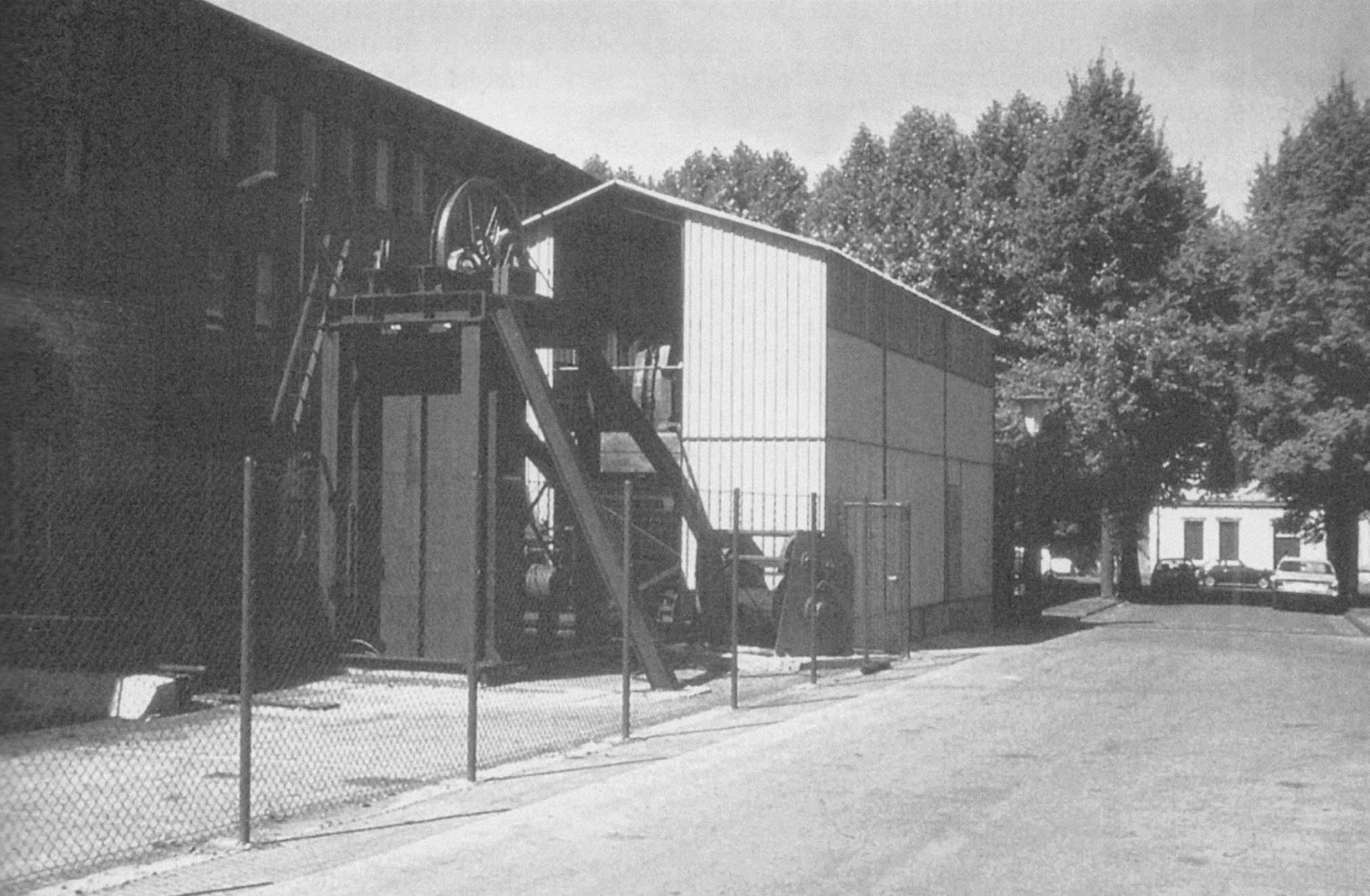 der Zwischenförderung von der vierten zur ersten Sohle. Ursprünglich im freien Gelände gelegen grenzt die Betriebsfläche heute
