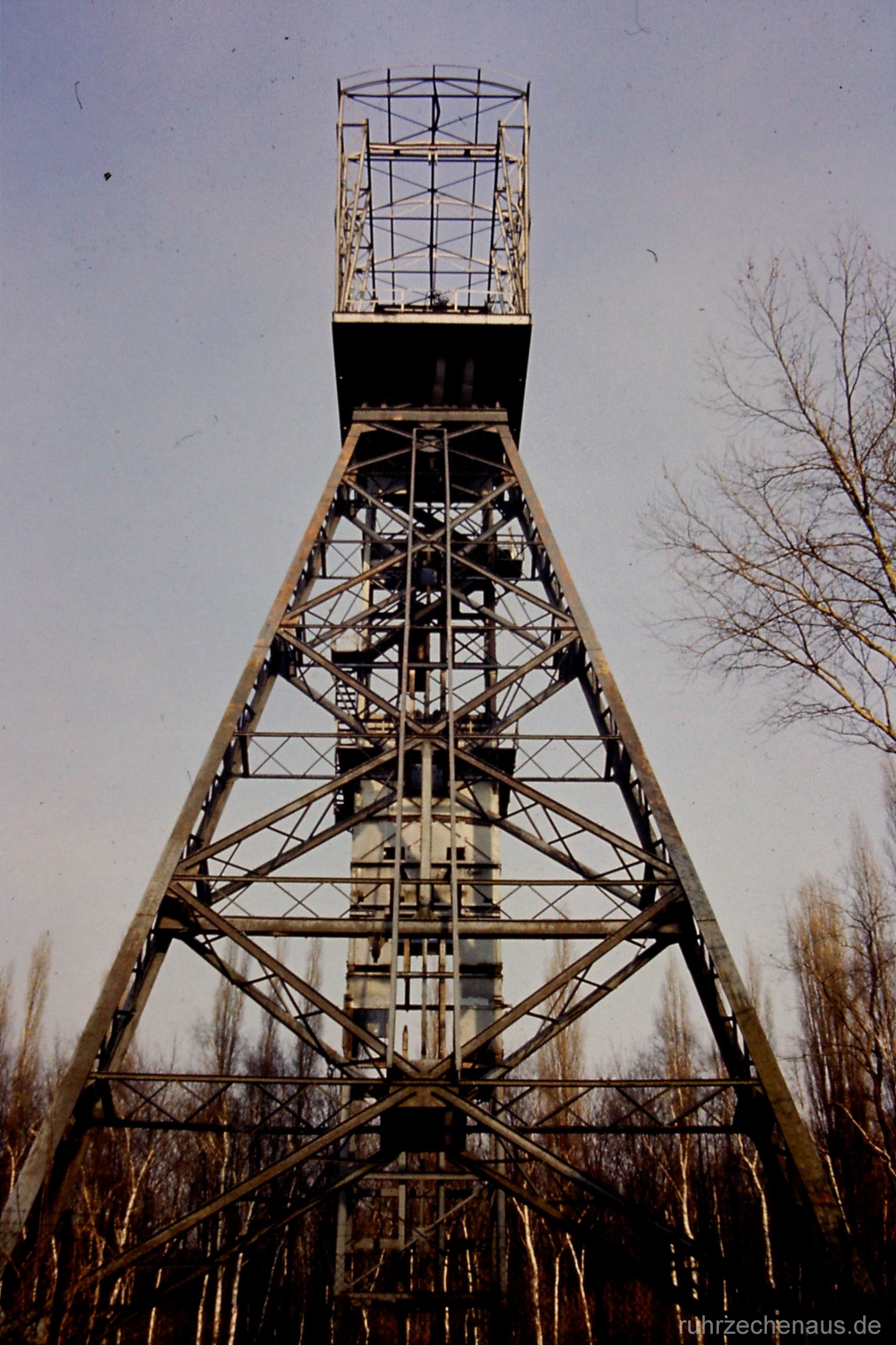 Strebengerüst durch eine Turmförderanlage in Stahlfachwerkbauweise ersetzt. Diese stammte vom Schacht 2 der Zeche Westphalia