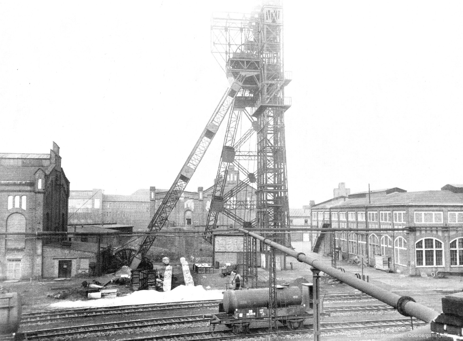 gab es früh Probleme wegen möglicher Bergschäden. 1864 erhielt die Zeche einen Eisenbahnanschluss. Die Förderung von knapp 5000 t/a