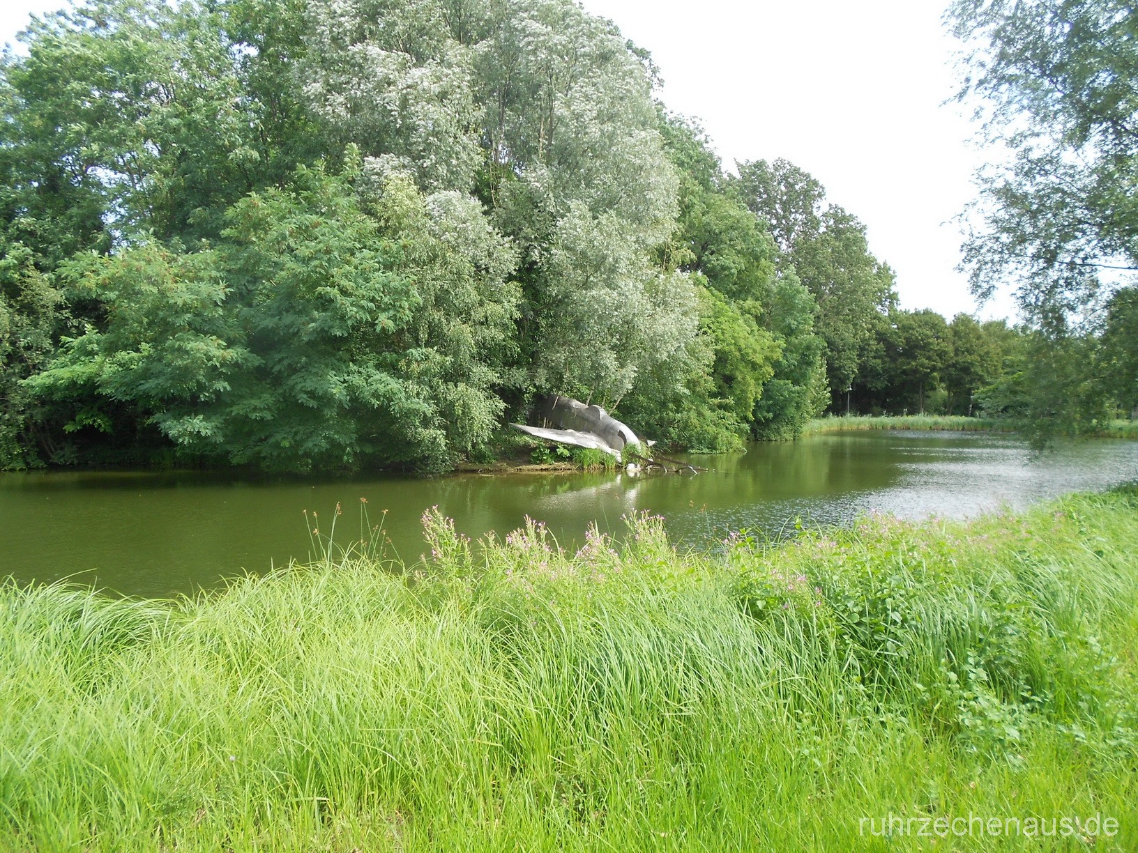 in die Grünfläche eines Parks, der zum angrenzenden Businesspark Niederrhein gehört einbezogen worden und unter einer kleinen begrünten