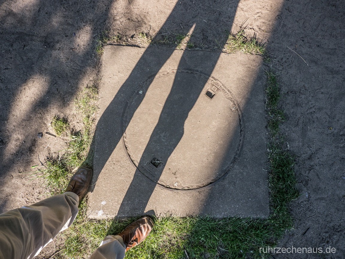 am ehemaligen Schacht zu erkennen. Er ist am Revisionsdeckel und einem Rohrstutzen erkennbar.