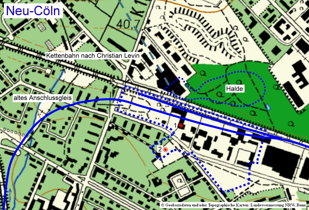 bildete lange Zeit (1870 - 1937) eine Betriebseinheit mit der Zeche Neu-Cöln unter dem Namen König Wilhelm. Die Namen