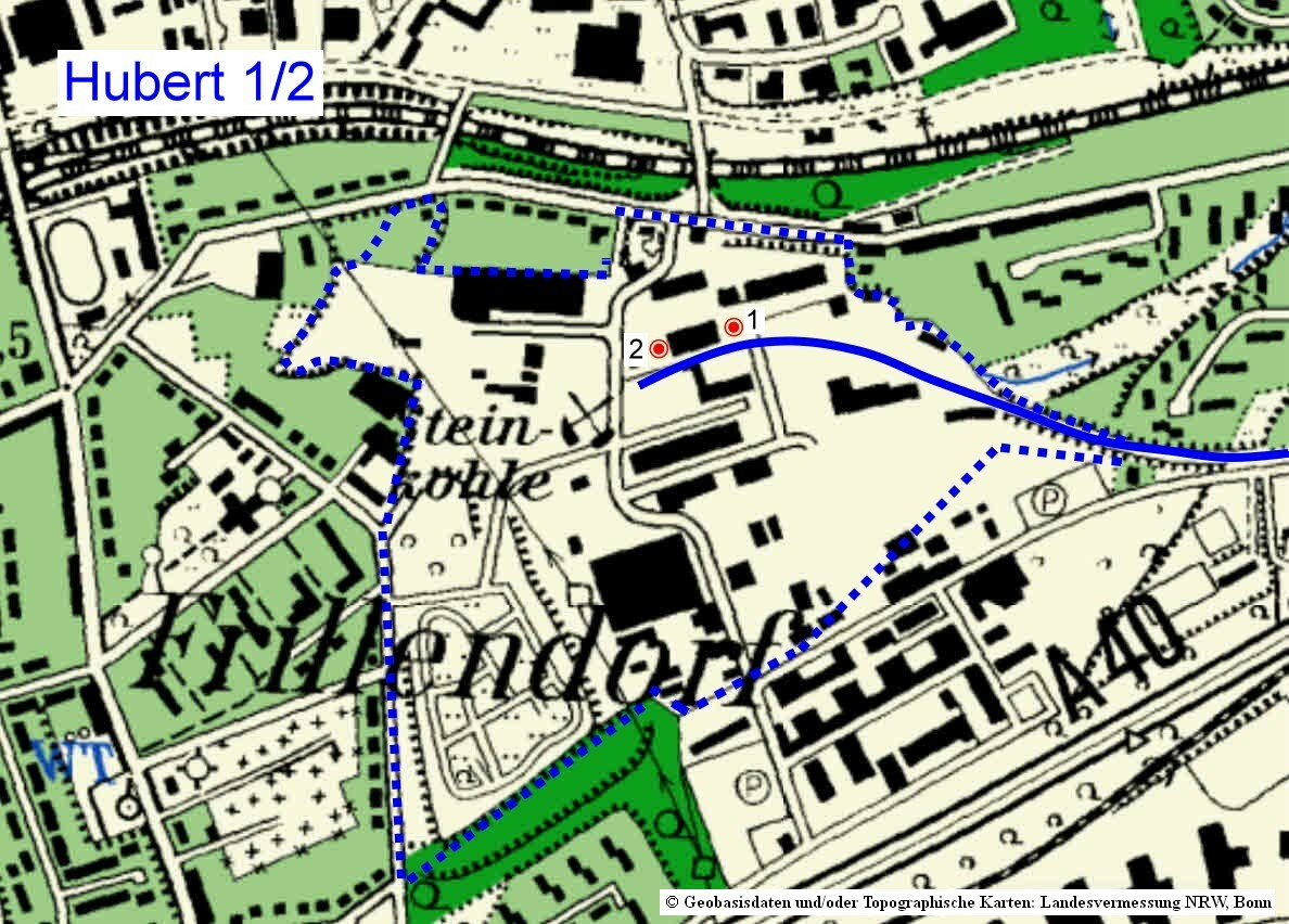 Verkehrsübungsplatz. An der Hubertstraße, die an der Zeche vorbei führt kann man ein Phänomen im Zusammenhang mit Zechengründungen oder