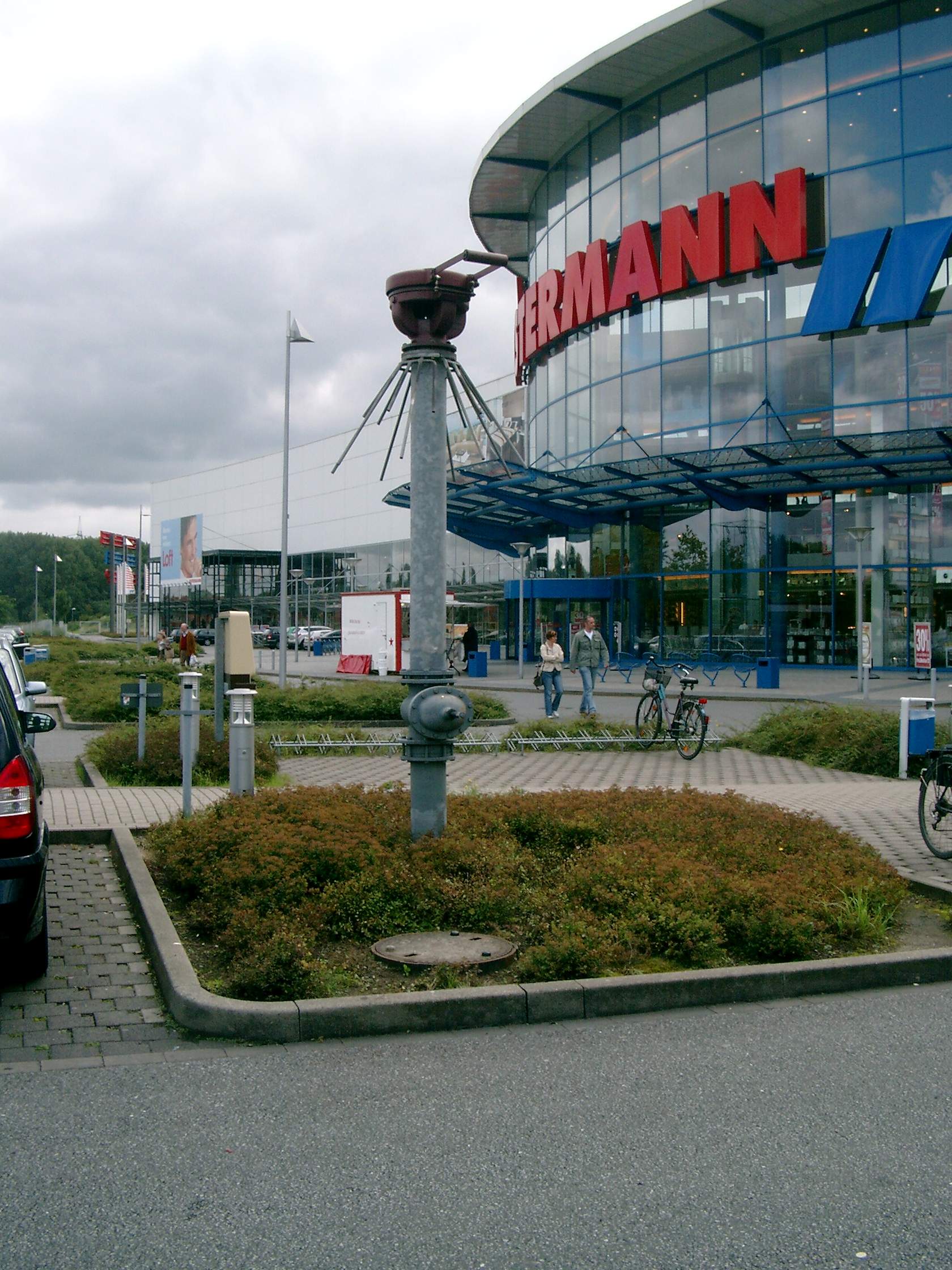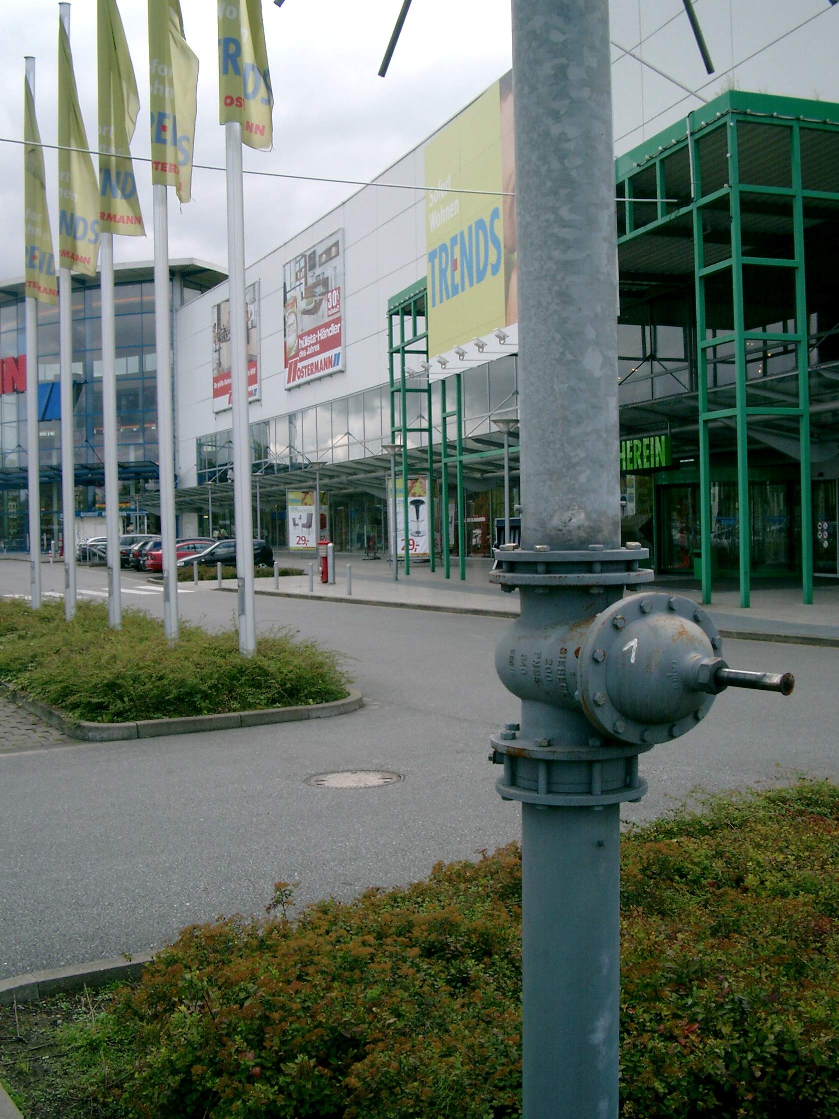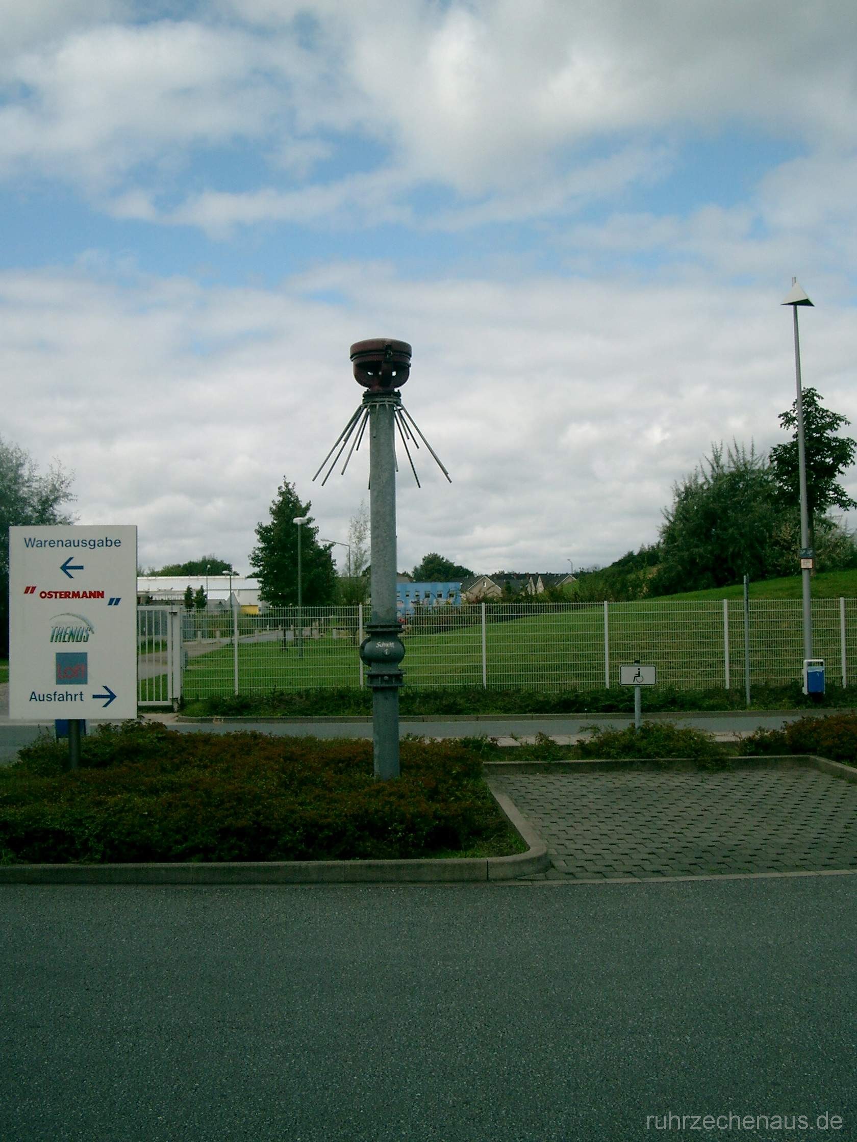 Eine weitere Protegohaube steht am Rand eines Parkplatzes. Hier dürfte es sich um eine Gasdrainage handeln.