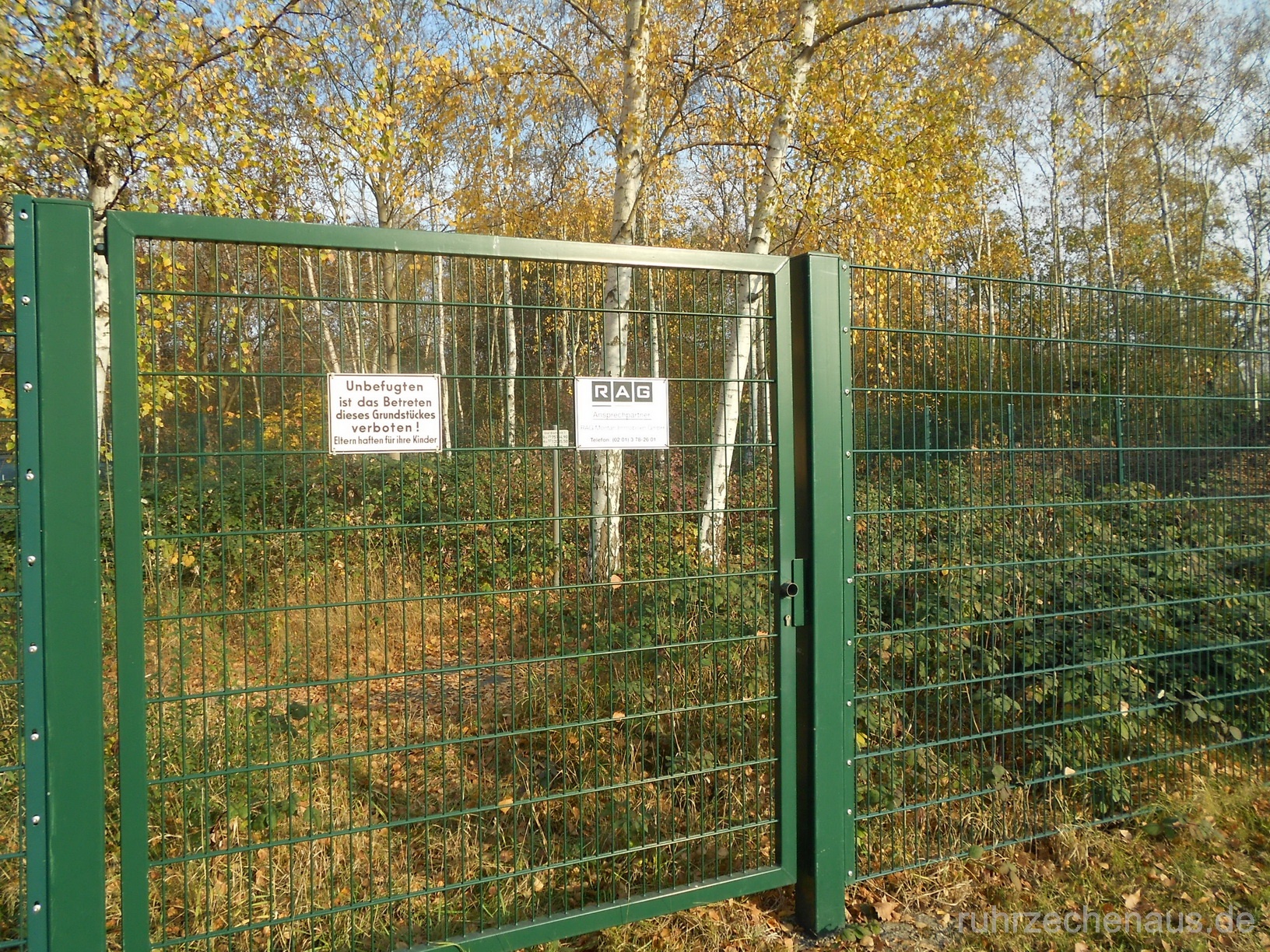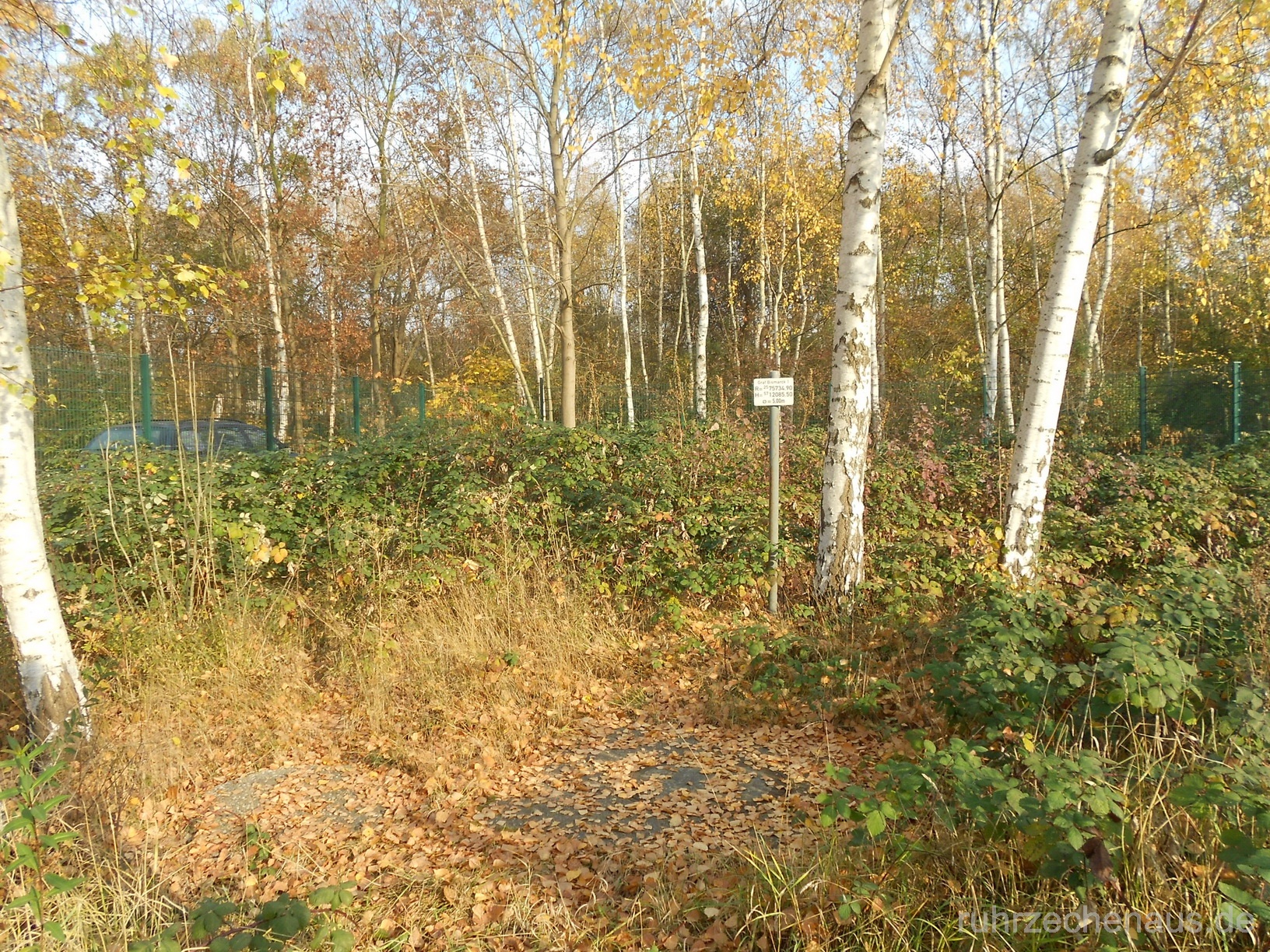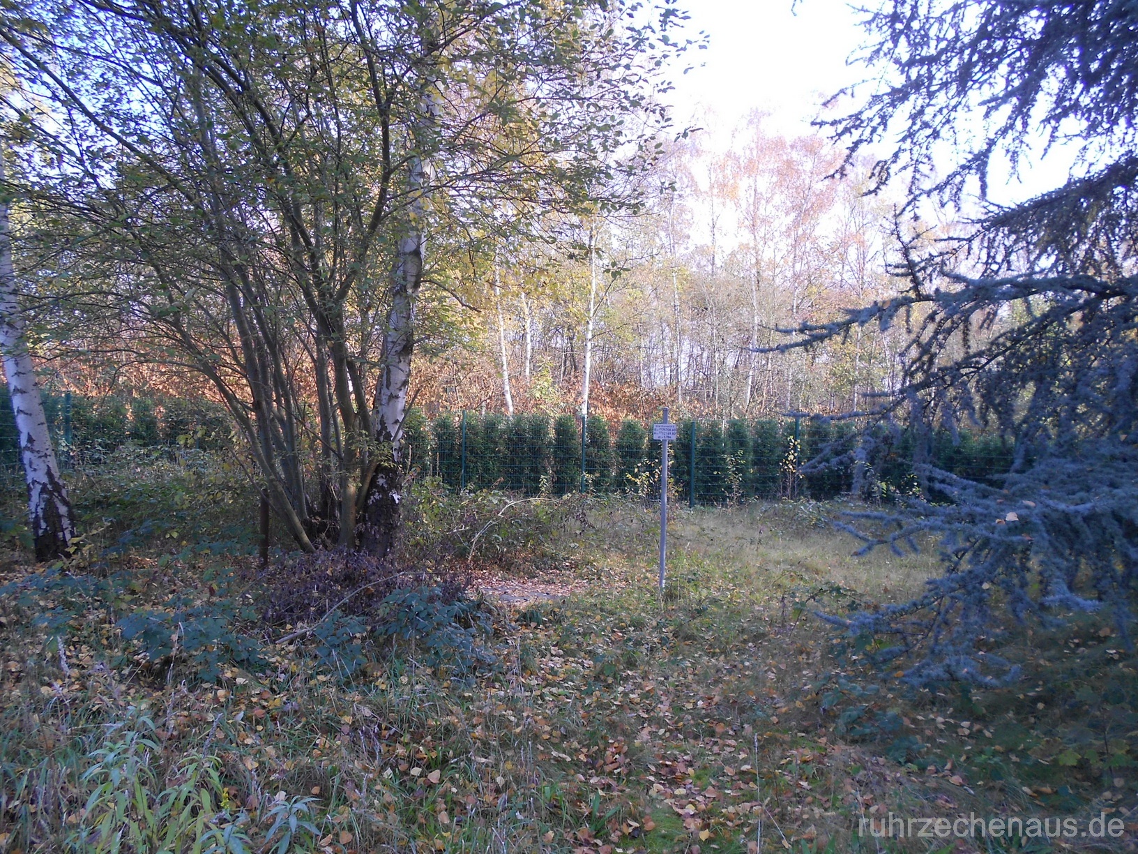 Schächte 6 und 9 sind eingezäunt und nicht zugänglich. Sie sind an den Schachtdeckeln zu erkennen. Das Gelände darum ist leer
