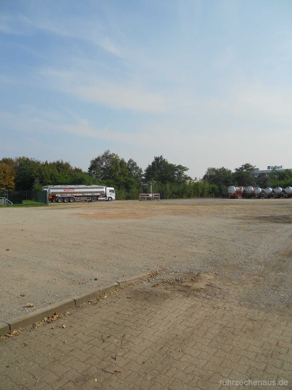 ist. Eine Spedition hat auf dem Schachtgelände ihren Stellplatz für Tanklastzüge eingerichtet.