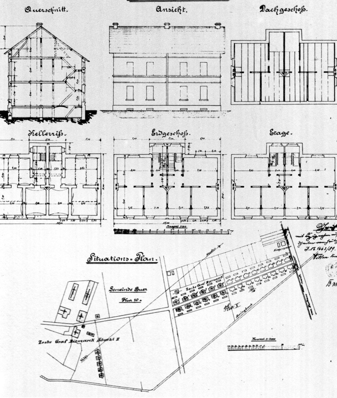 der Schachtanlage 1/4 neben dem Bereich der Marina (Parallelstrasse 1847 -1888), (Zoosiedlung 1915 - 1921). Die einfachen Gebäude