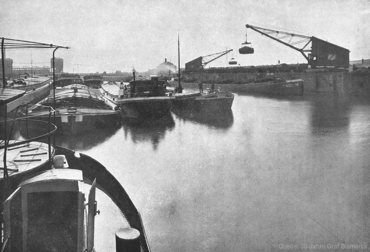 dem Bau des Rhein-Herne-Kanals wurde auch der Zechenhafen etwas weiter nordöstlich angelegt. Damit war für das Massengut Kohle der