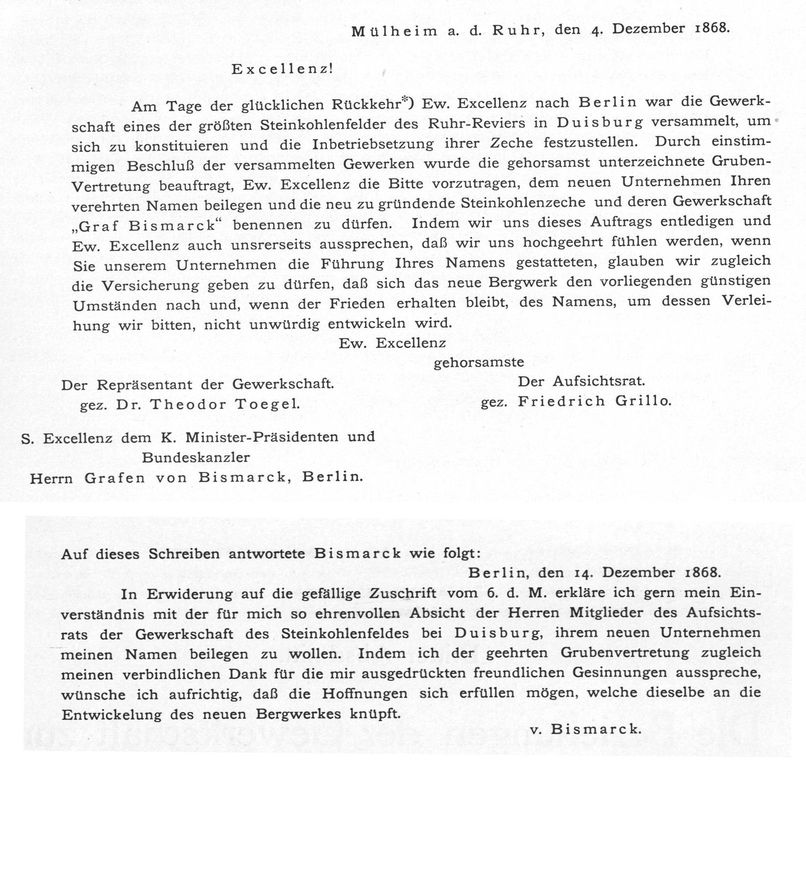 Die Zeche Graf Bismarck wurde nach dem preußischen Ministerpräsident und dem ersten ("eisernen") Kanzler