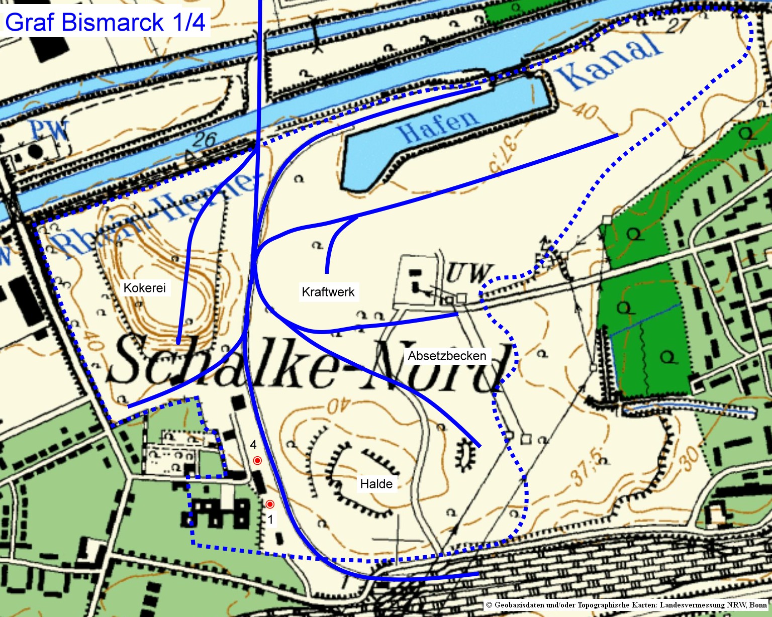 abgeteuften Anlagen waren über Zechenbahnen mit dem ersten Standort verbunden, da er neben dem Bahnhof Gelsenkirchen-Bismarck lag. Mit