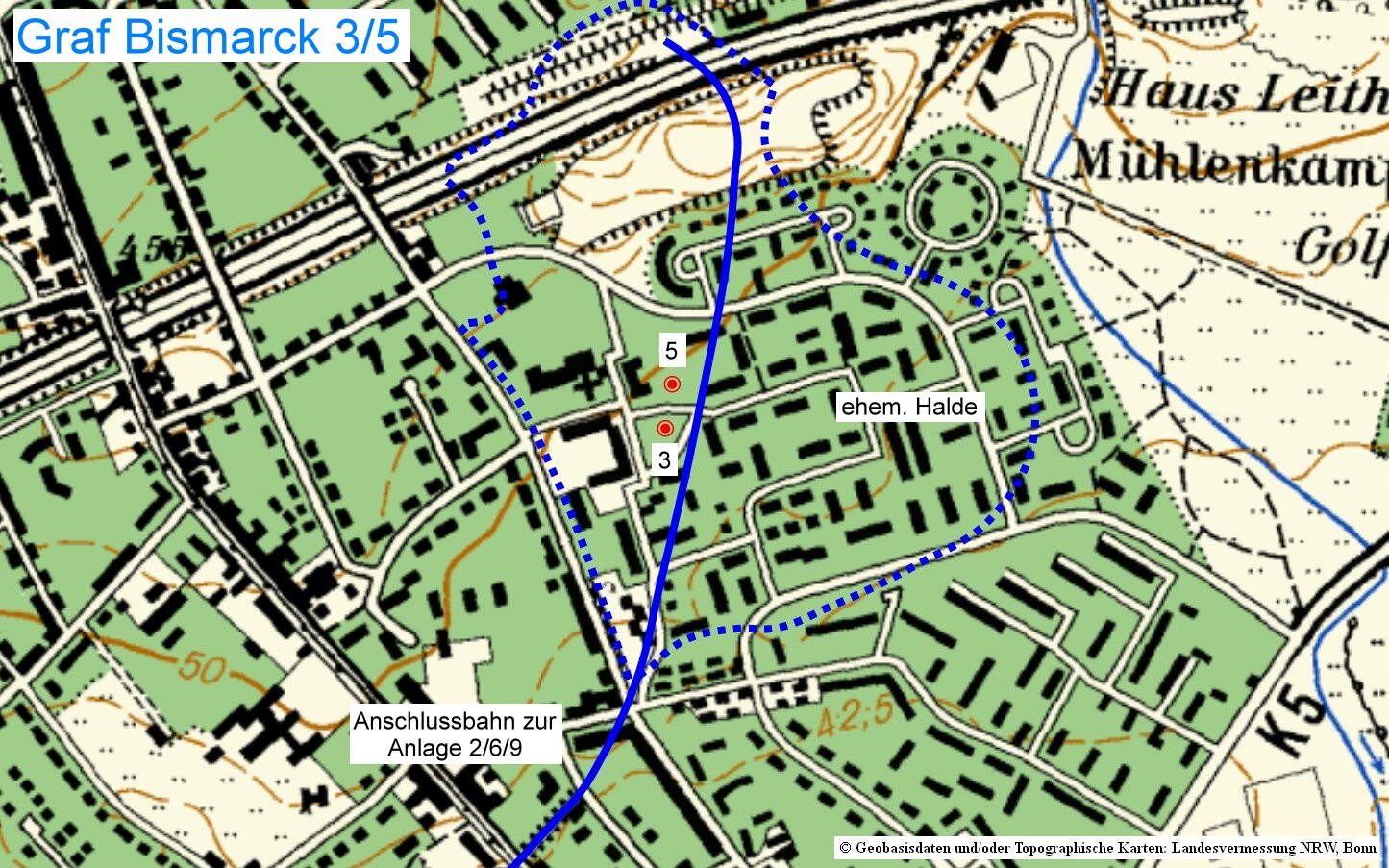 Die Anlage 3/5 erschloss das nördliche Grubenfeld. Sie blieb war die kleinste der insgesamt vier. Auf der Fläche