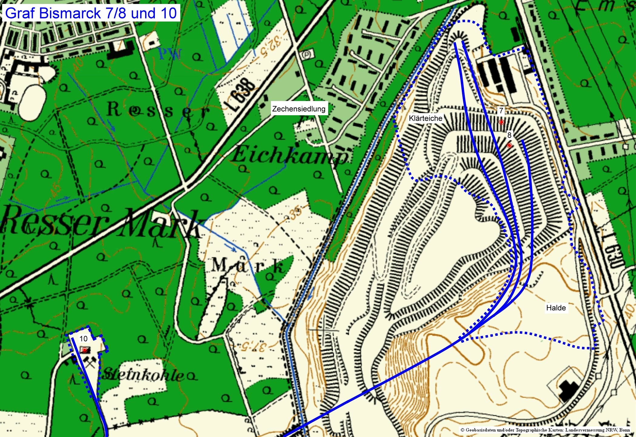 Die Schachtanlage 7/8 lag isoliert im Emscherbruch und erschloss das östliche Grubenfeld. Abteufbeginn war 1910.