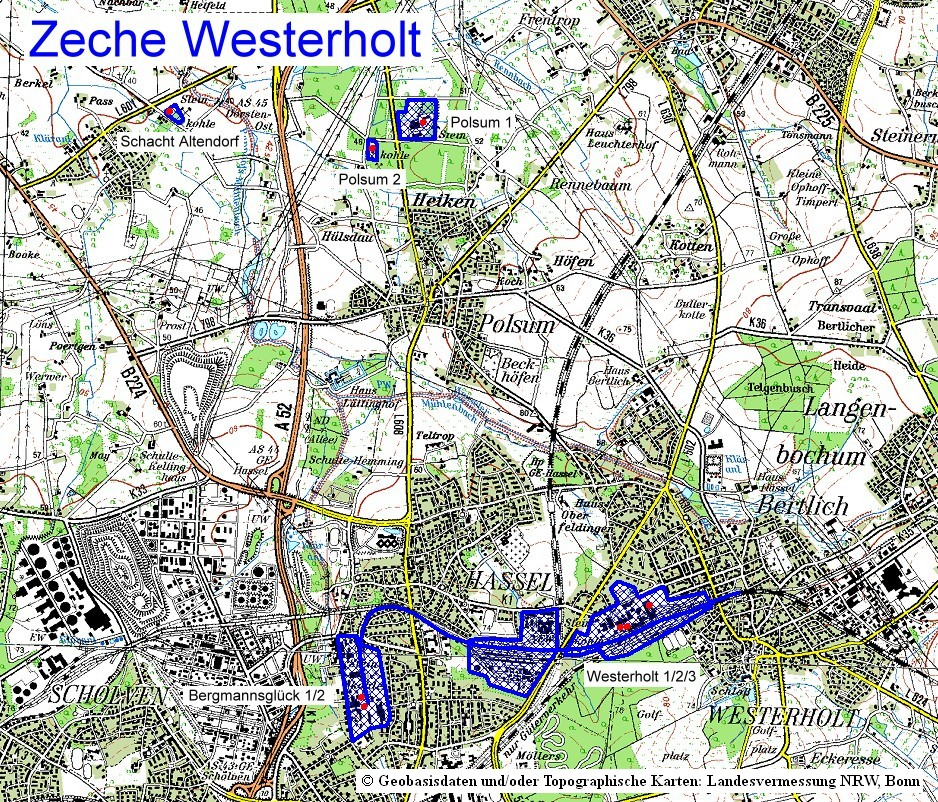 noch im Bereich der Schächte Altendorf und Polsum Abbau betrieben, da hier die profitabelsten Flözpartien anstanden.