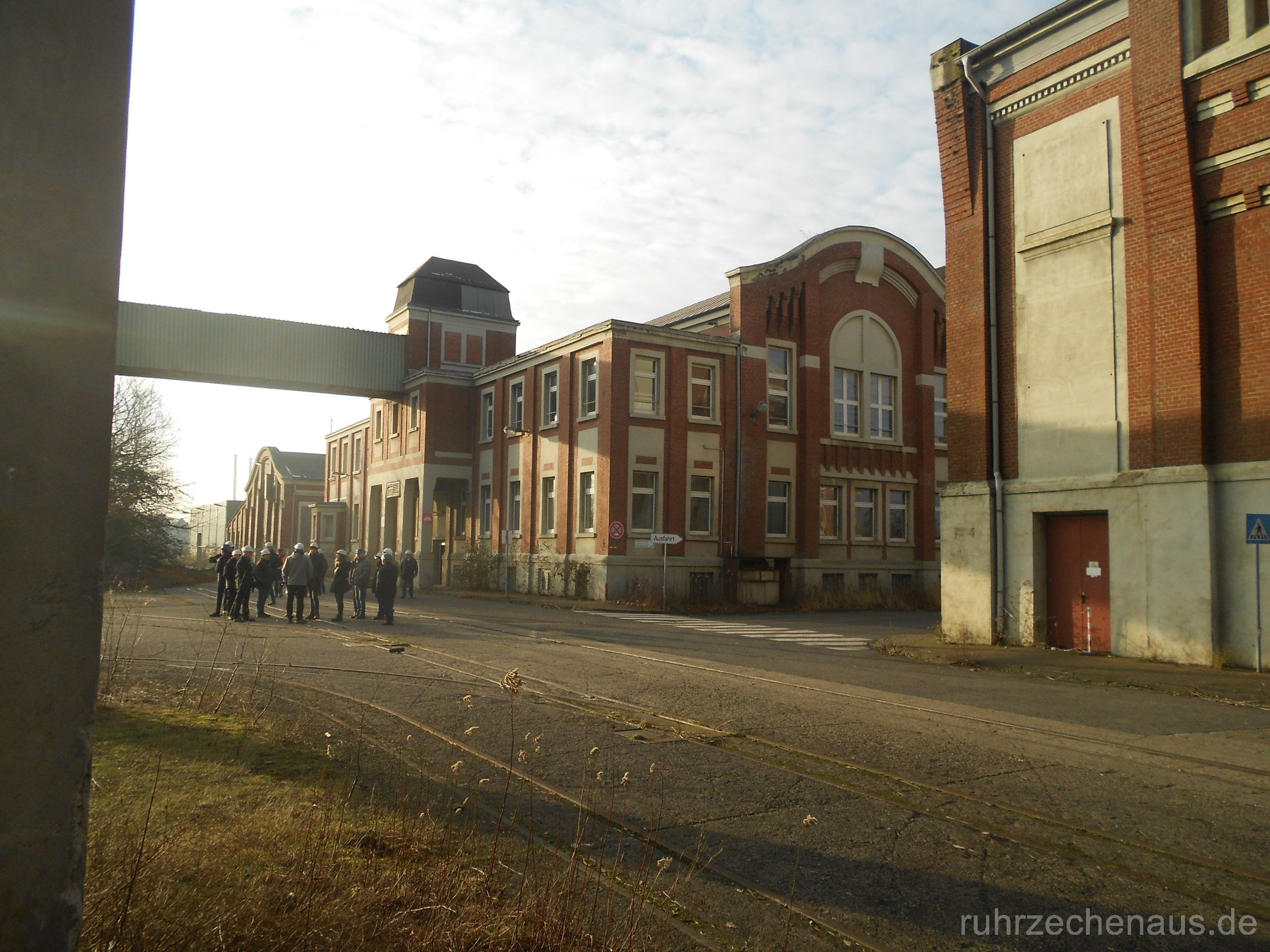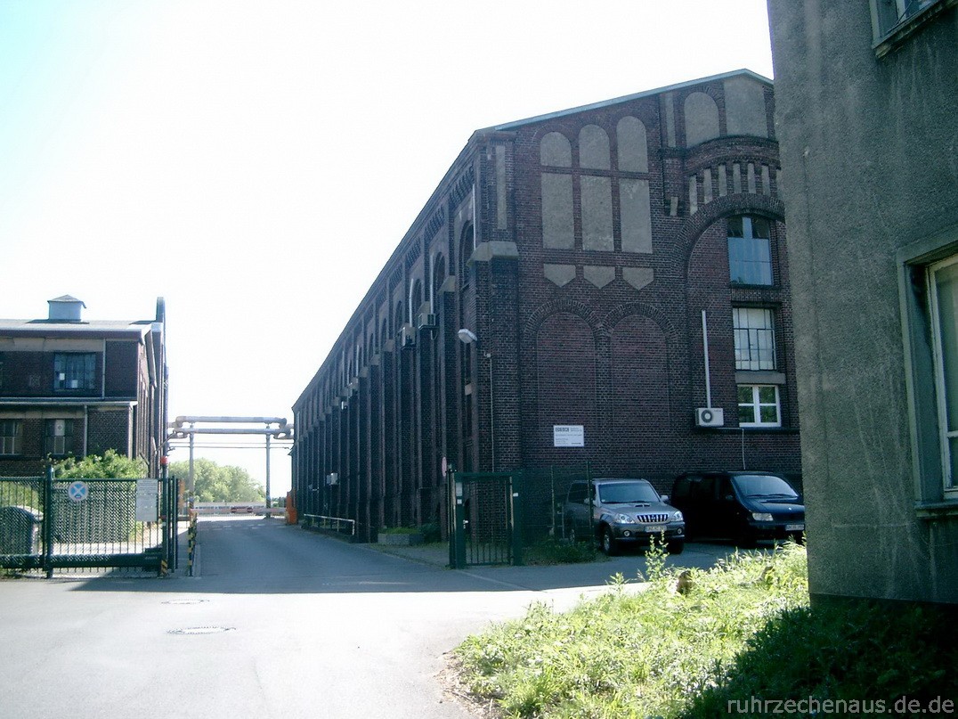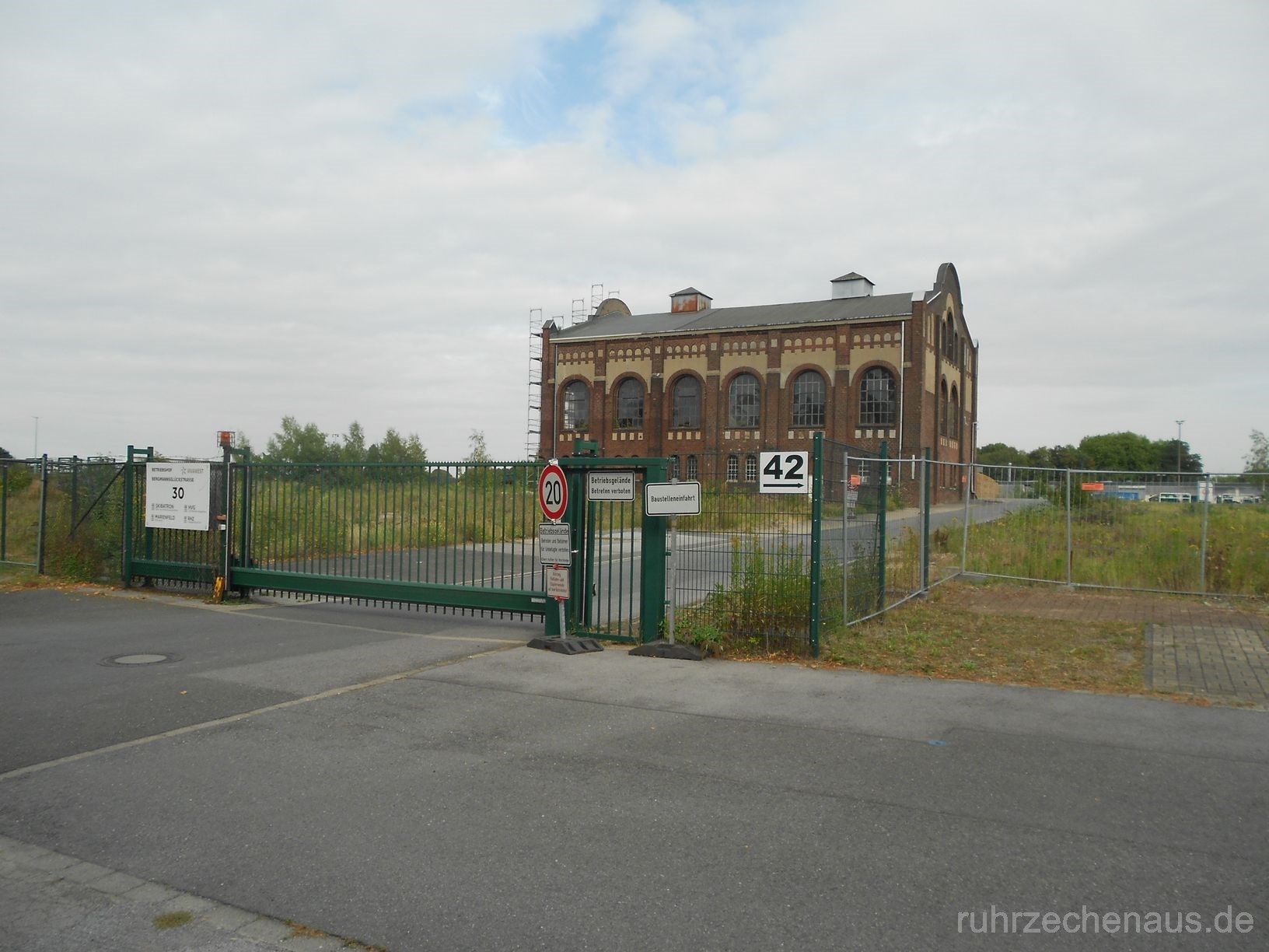 Die Schächte liegen nicht frei zugänglich und eingezäunt auf dem Betriebsgelände. Das Fördermaschinenhaus III von 1911 mit der
