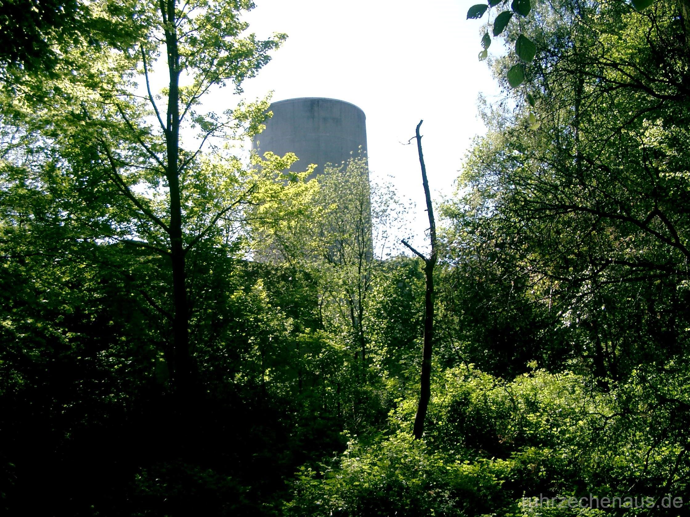 Kraftwerk mit dem hohen Schornstein und die ebenfalls das Umfeld stark beeinträchtigende Kokerei Hassel (Abrissbeginn 2003) komplett