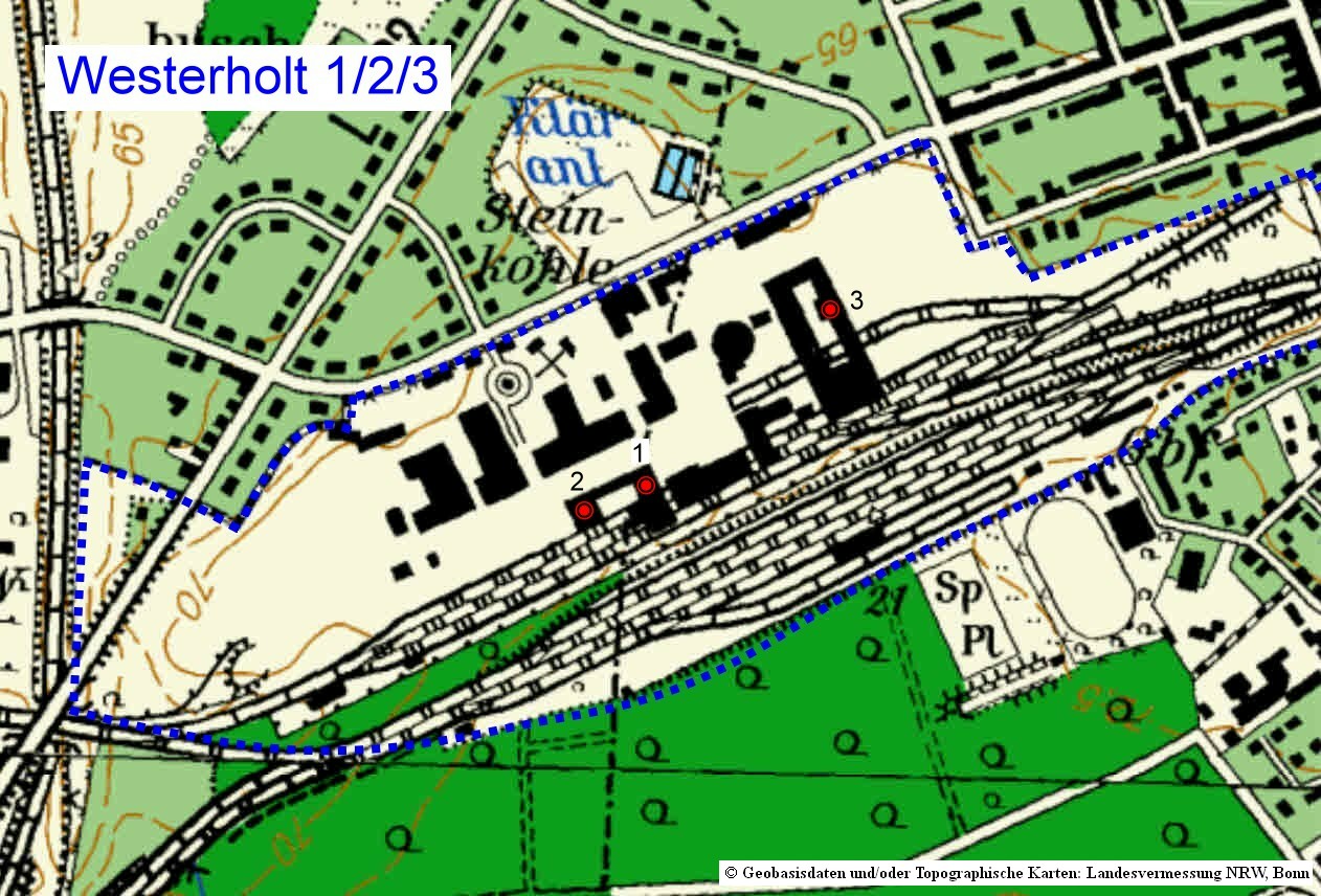 Am Standort Westerholt 1/2/3 bestand bis 1953 eine Kokerei, die durch die weiter westlich in Gelsenkirchen-Hassel gelegene ersetzt wurde.