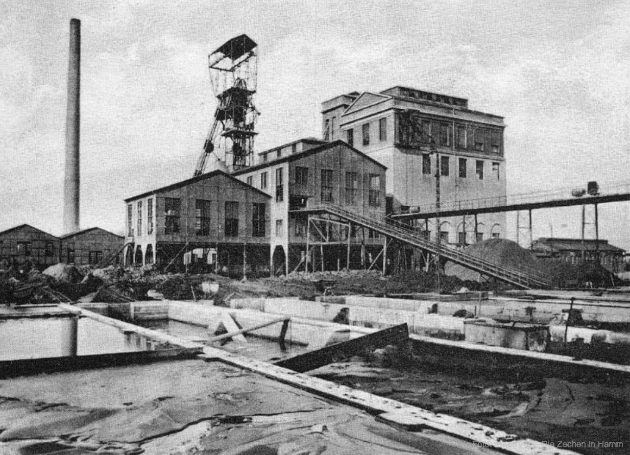 Der Schacht 3 in Berkamen-Rünthe wurde ab 1912 geteuft und alle für eine selbständige Anlage nötigen Einrichtungen.