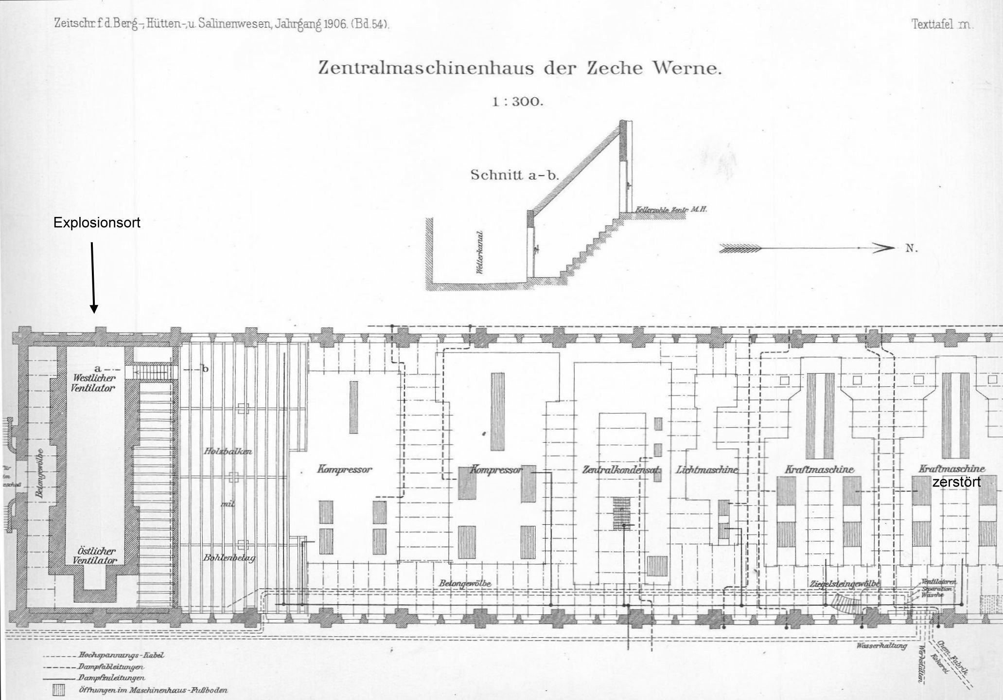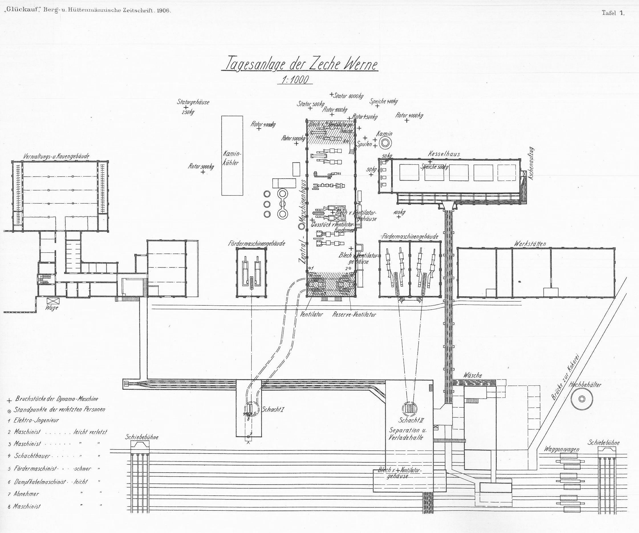 durch die durchaus moderne Zentrale vergrößert. Üblich waren mehrere kleine Hallen. Auslöser war ein Grubenbrand am 26. November