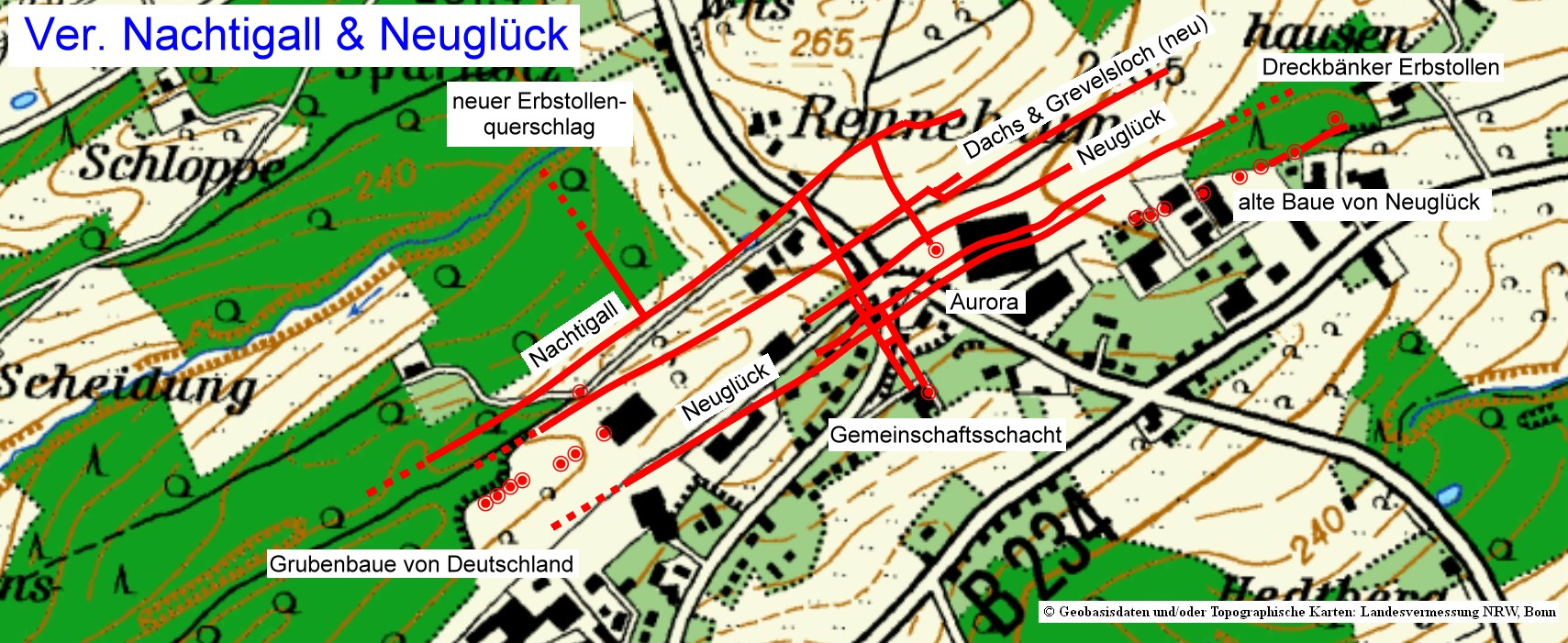 von Nachtigall (teilweise) und Neuglück. Der schon seit etwa 1850 genutzte Schacht Vincke von Neuglück stand