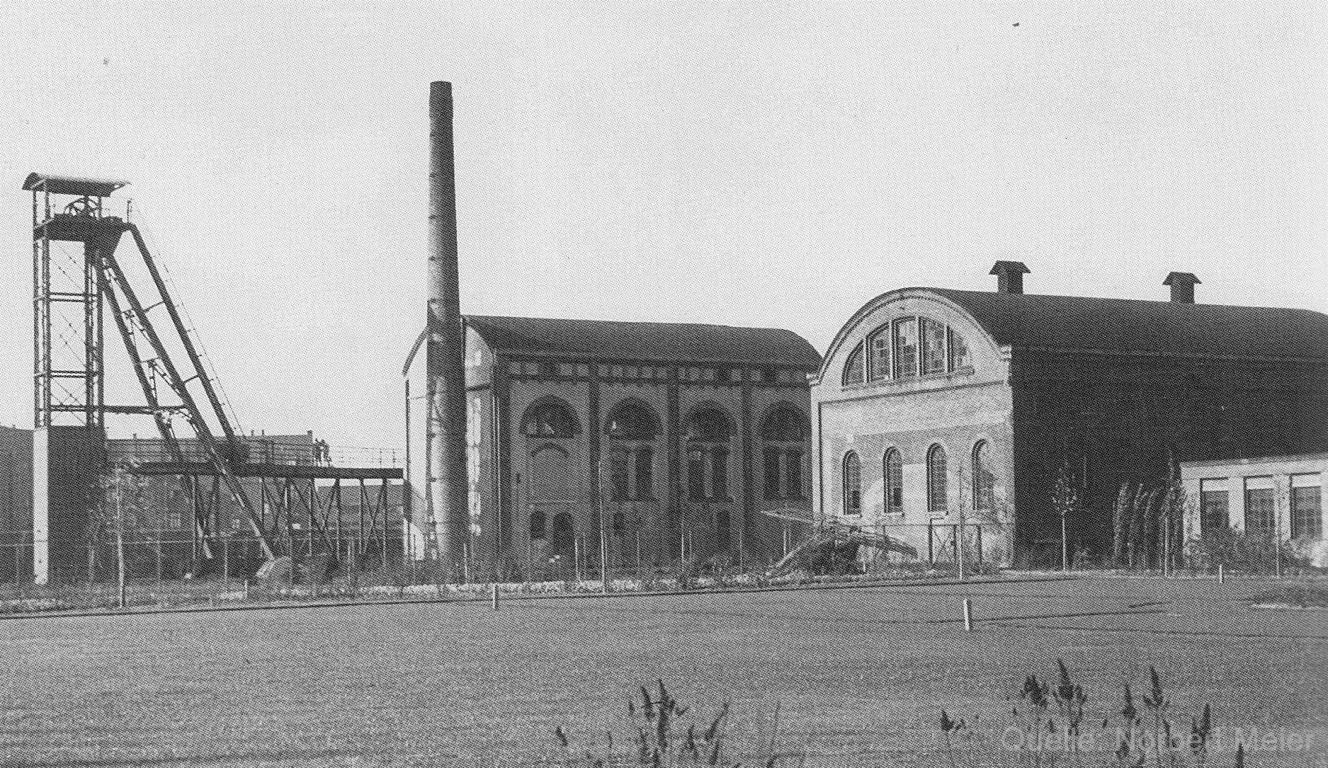 noch für Seilfahrt und Wetterführung blieben die Schächte offen. Diese Situation zeigt ein Luftbild von ca. 1928. Die im Vordergrund