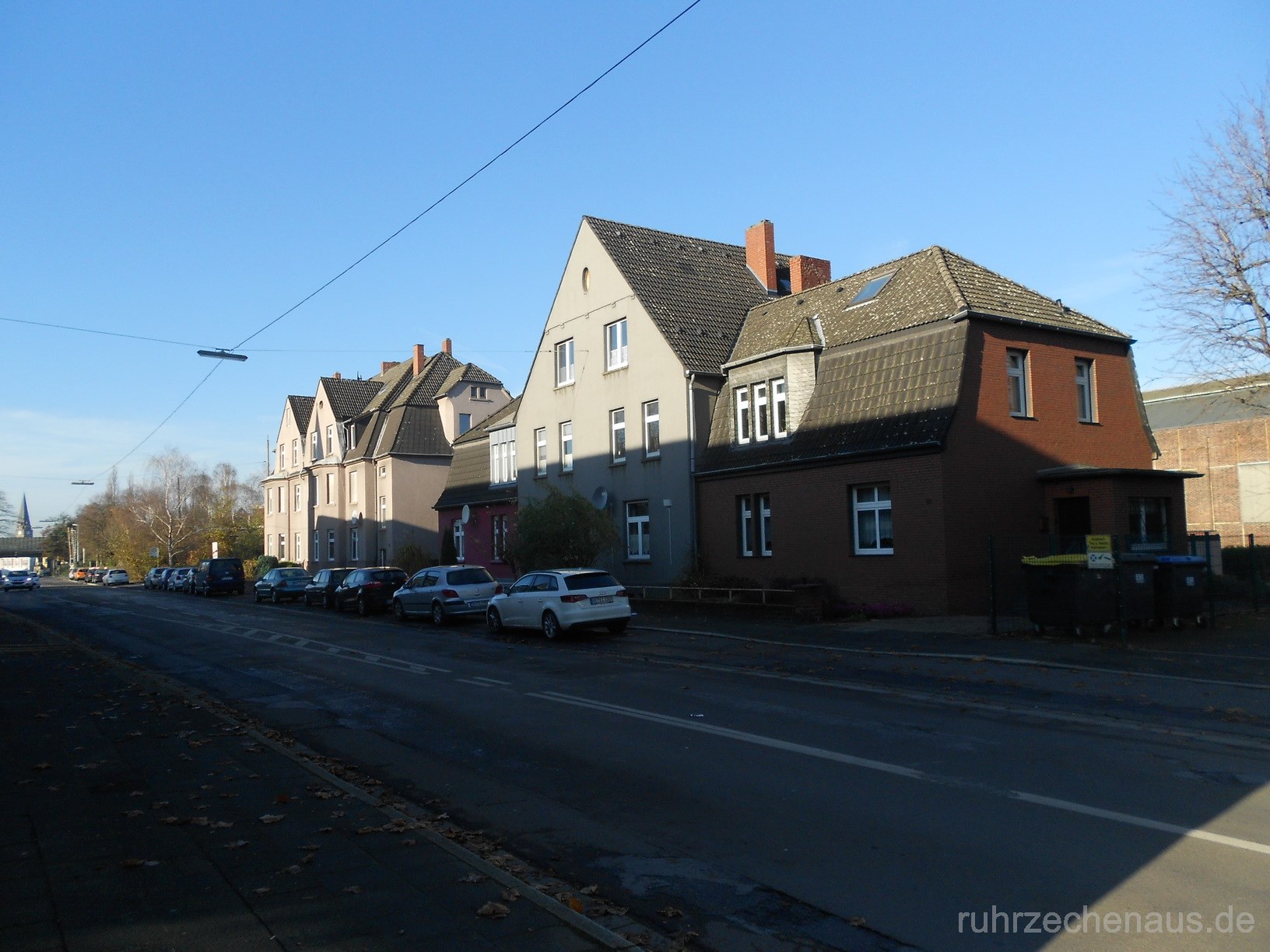 erkennbare Straße war Sackgasse, rechts lag der Zechenbahnhof. Heute verläuft darüber die Cranger Straße in die Herner Innenenstadt.