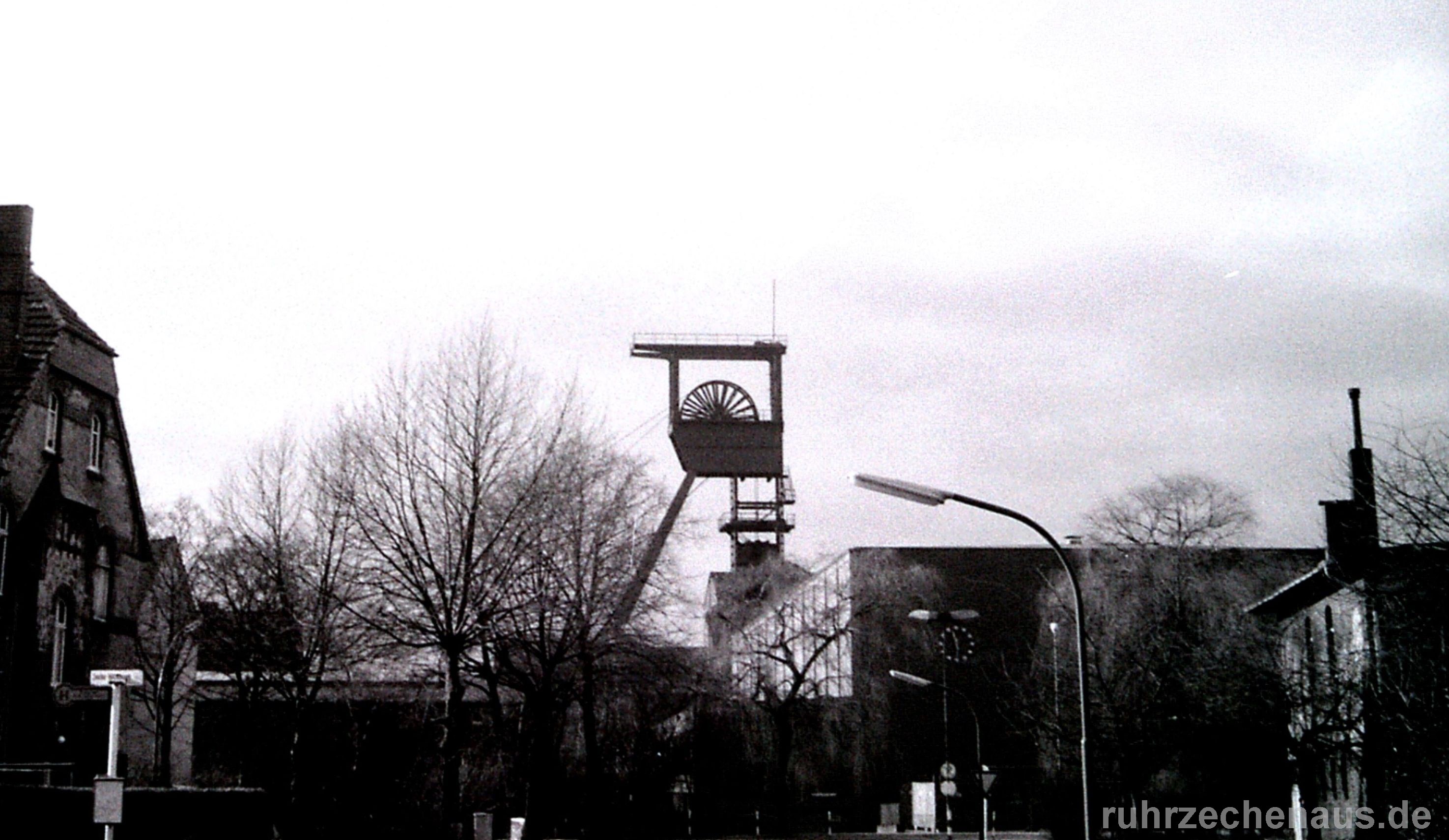 Gut zu erkennen ist die eingeengte Lage der Zeche. Sie ist komplett mit Wohnhäusern umbaut. Wegen der Innenstadtlage gab es nur eine
