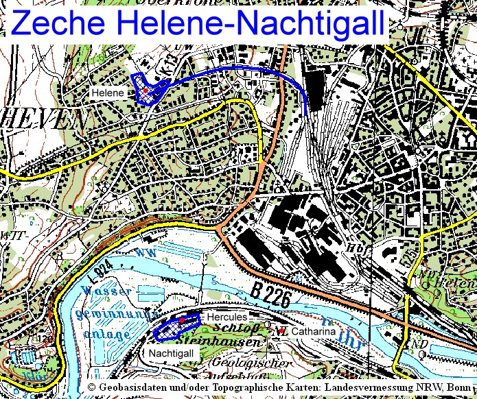 Südlich von Helene Tiefbau bestanden kleinere Stollenbetrieb, die ihr Grubenwasser z.T. über den Erbstollen abführten